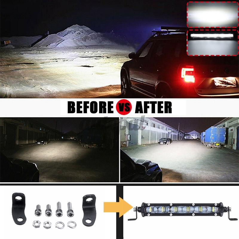 60W Slim Single Row LED Work Light Bar 8 Inch Spot Beam Offroad Car Truck SUV