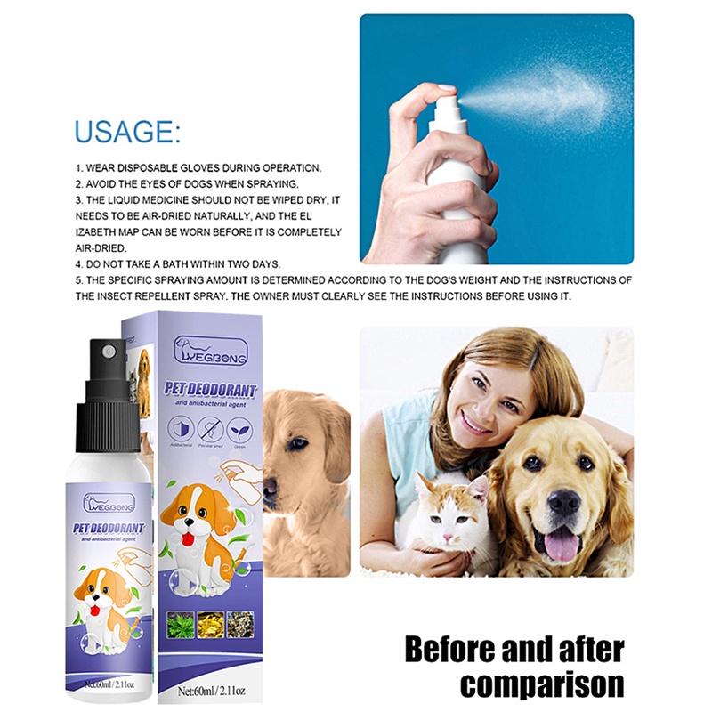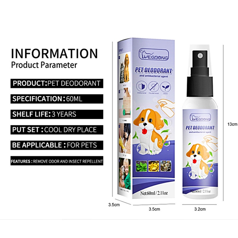 60ml Pet deodorant spray to urine odor body odor deodorant spray cats and dogs air fresh deodorant