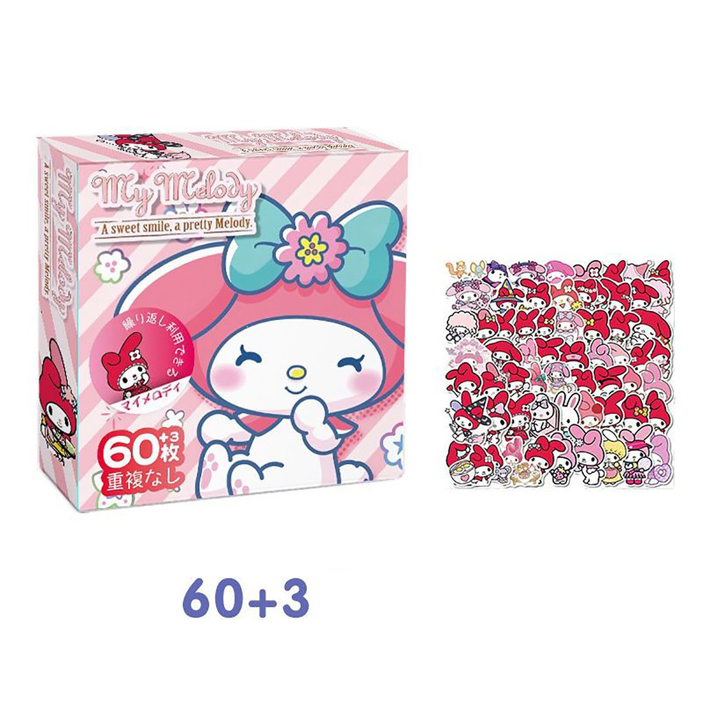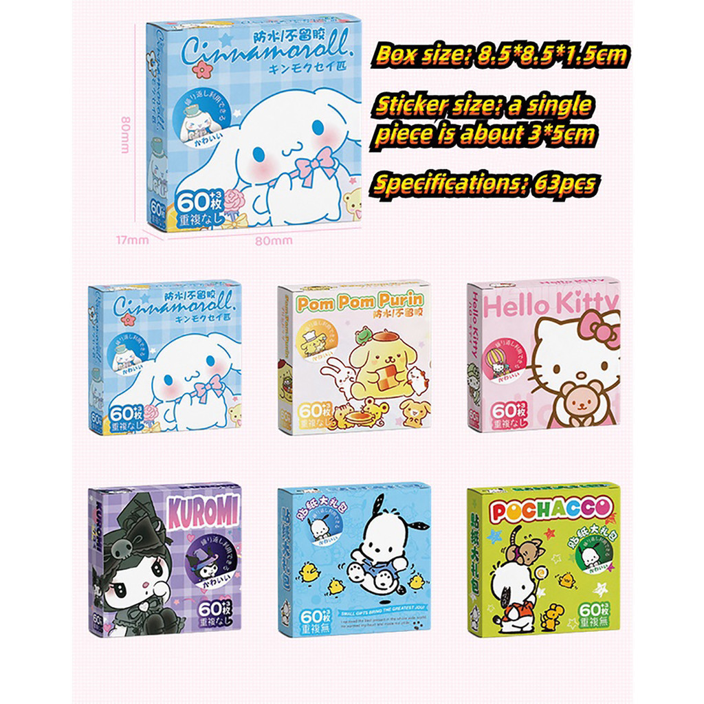 60pcs/Box Cartoon Sanrio DIY Stickers Cute Kuromi Waterproof PVC Stickers Handbook Sticker