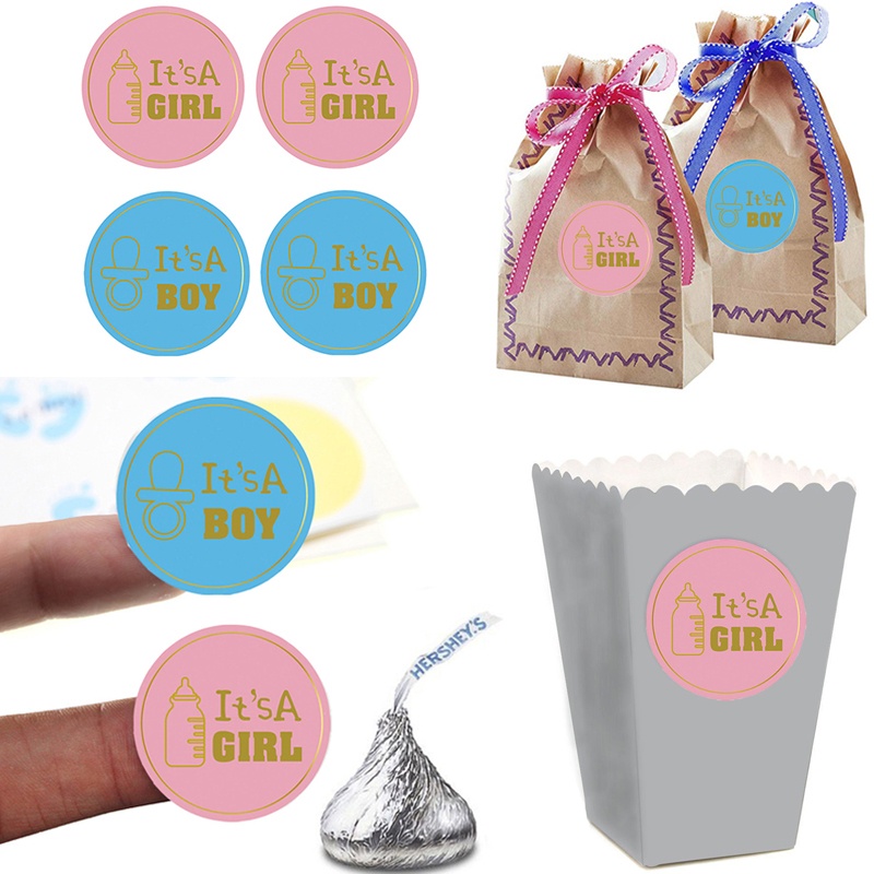 60pcs Its Boy or Girl Vote Gift Bag Sticker Label for Gender Reveal Party Baby Shower Supply