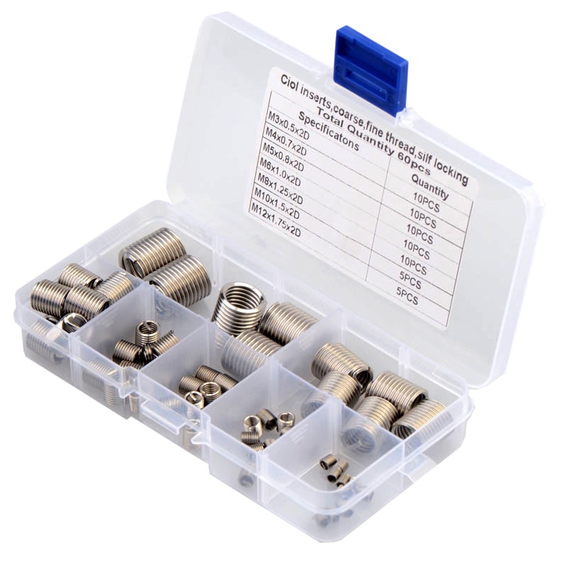 60pcs/box Stainless Steel Wire Thread Insert Repair Tool Kit M3 M4 M5 M6 M8 M10 M12 High Quality