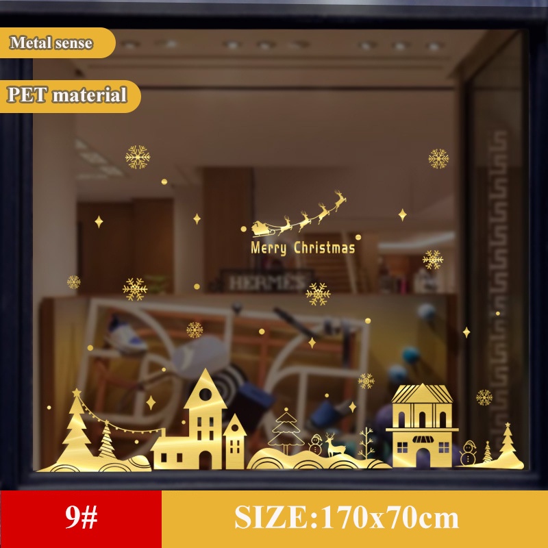 Large Gold Glass Sticker For Window Christmas Glass Sticker For Door Glitter Stickers Set Big Shopping Mall Decorative Sticker For Xmas DIY Decoration