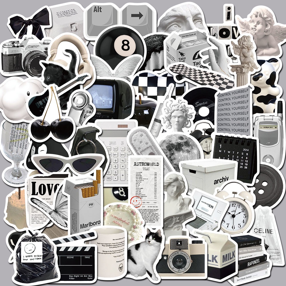 61Pcs Nordic Classical Black & White Style Series Stickers DIY Fashion Waterproof stickers