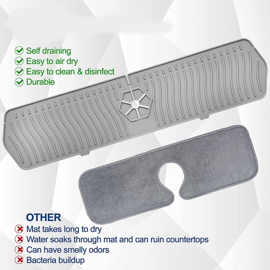 61cm Silicone Faucet Handle Drip Catcher Tray Kitchen Guard Mat - Easy to Clean Faucet Drip Catcher For Sink Faucet - Easy to Install Drip Mat Drains Water Back Directly I