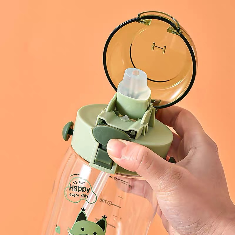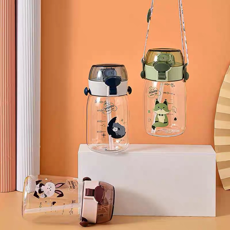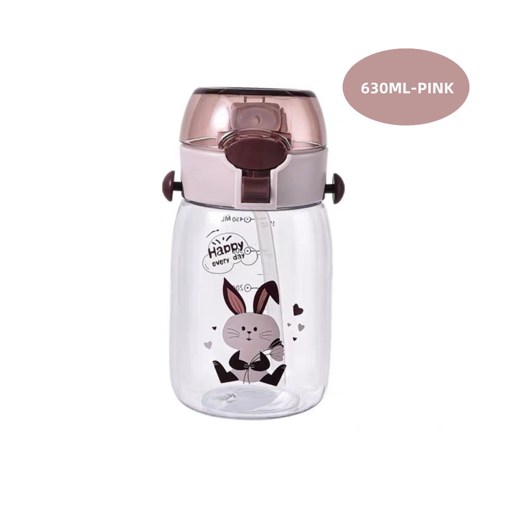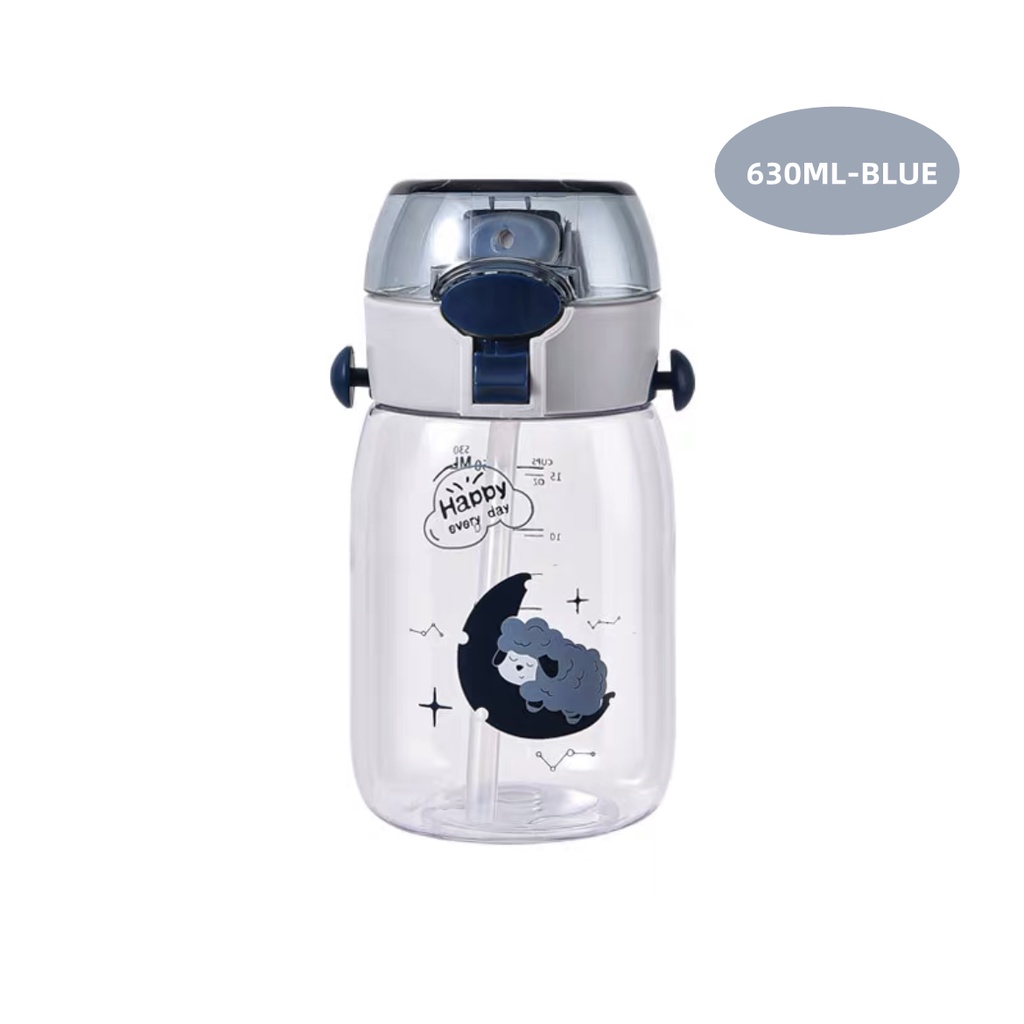 630ml Clear Plastic Straw Space Cup, Bulletproof Lid Water Bottle, tumbler with Strap