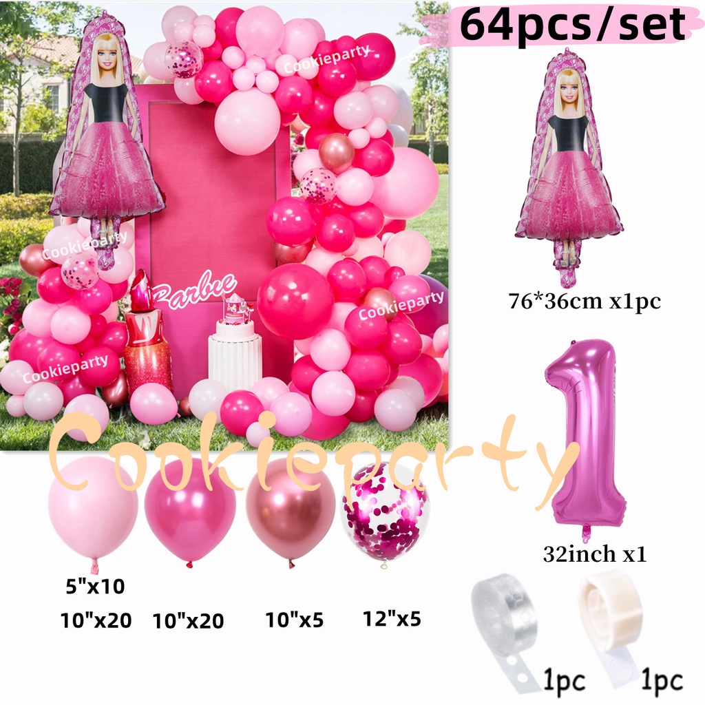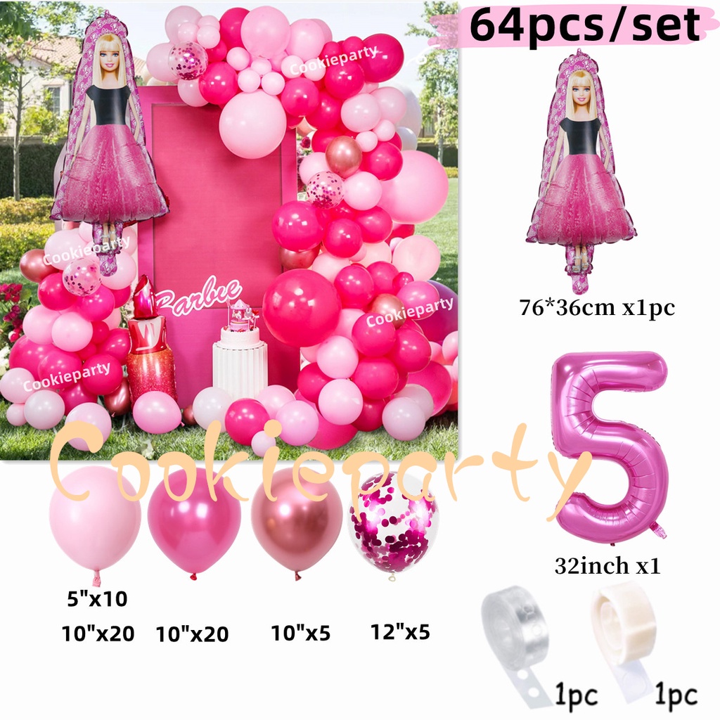 Barbie Balloons Garland Arch Kit Pink Princess Theme Balloons Girls Birthday Party Baby Shower Wedding Decorations