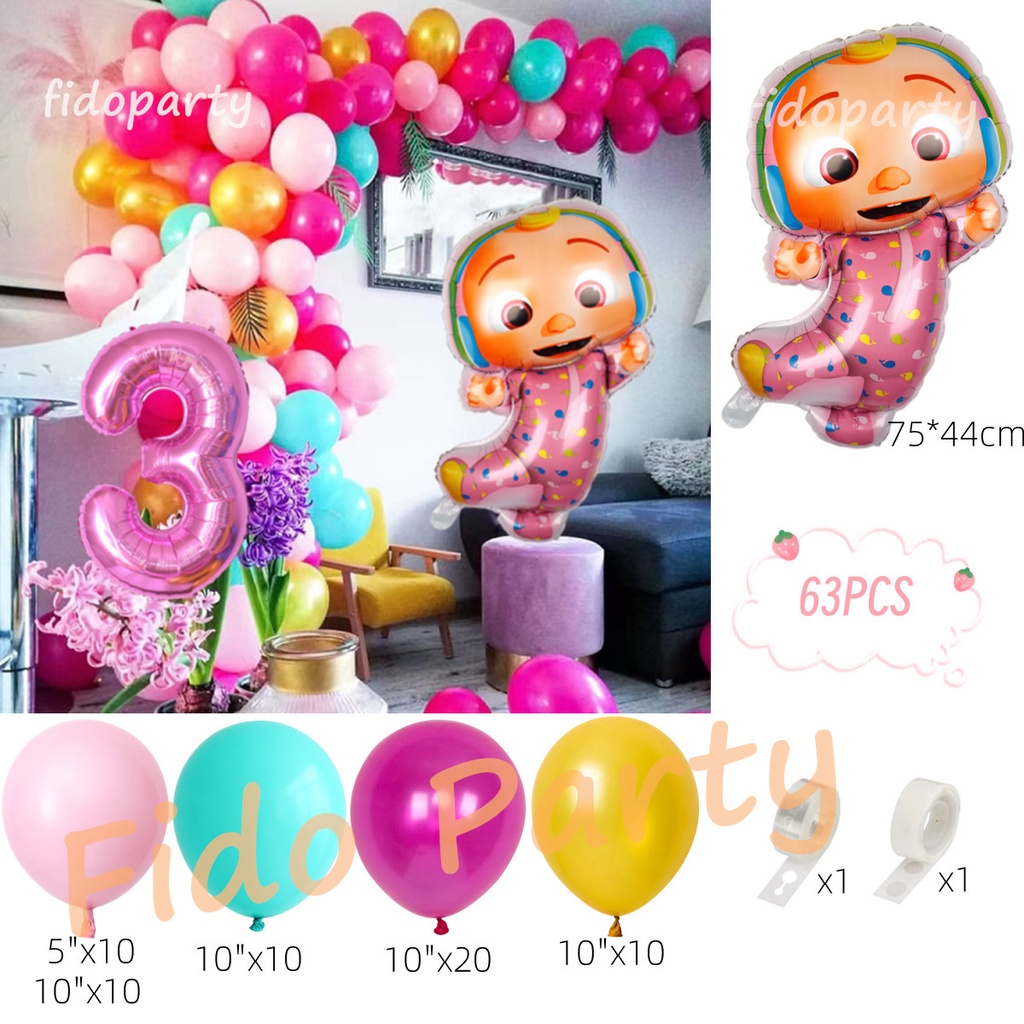 64pcs Cocomelon Balloons JJ Melon Theme Birthday Party Decorations Kids Rose Red Latex Balloon Set Baby Shower Party Needs