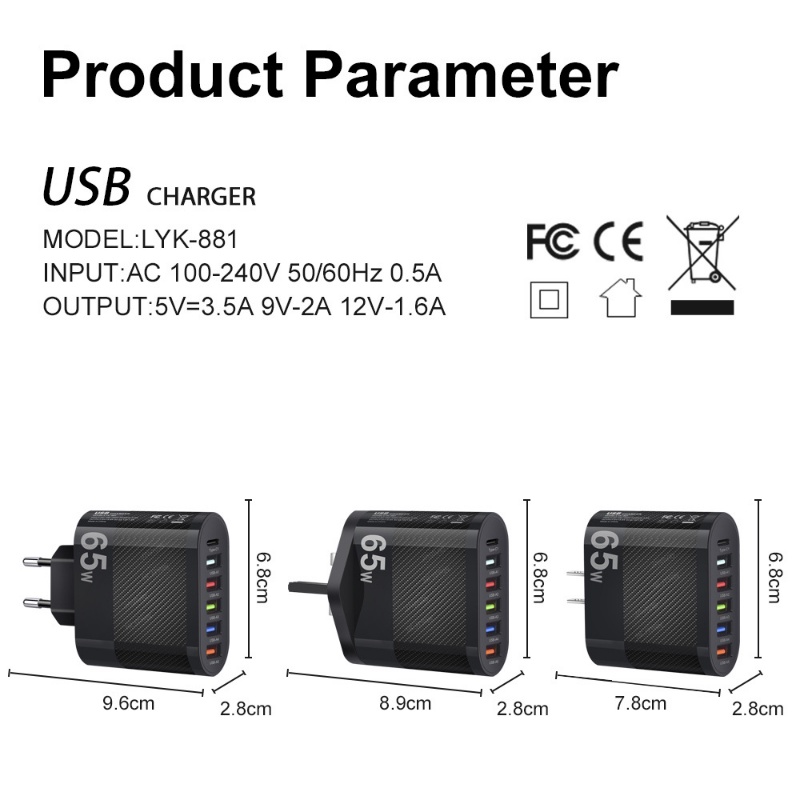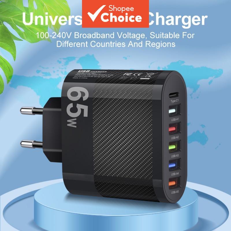 65W Multi-Port USB Charger Wall Charging For Mobile Phone Type C Charger Adapter