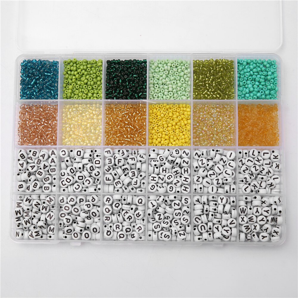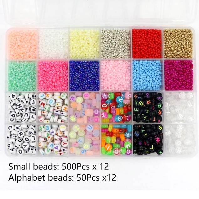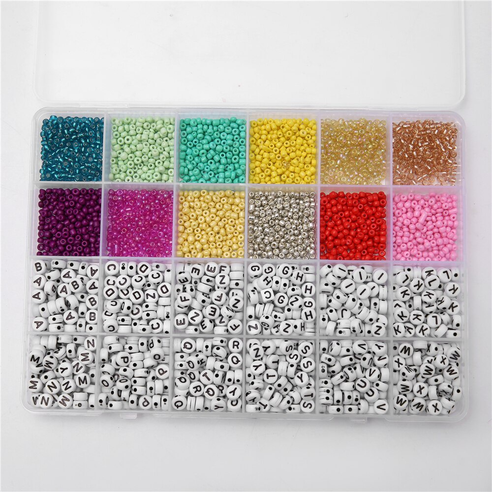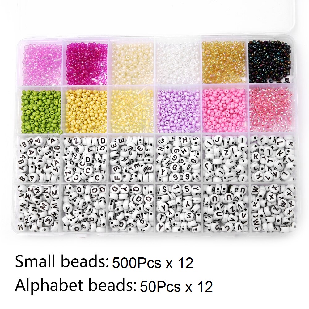 6600Pcs 2mm Glass Seed Beads Starter Kit Alphabet Beads Set Letter Heart Shape Beads For Name Bracelets DIY Craft Jewelry Making Supplies
