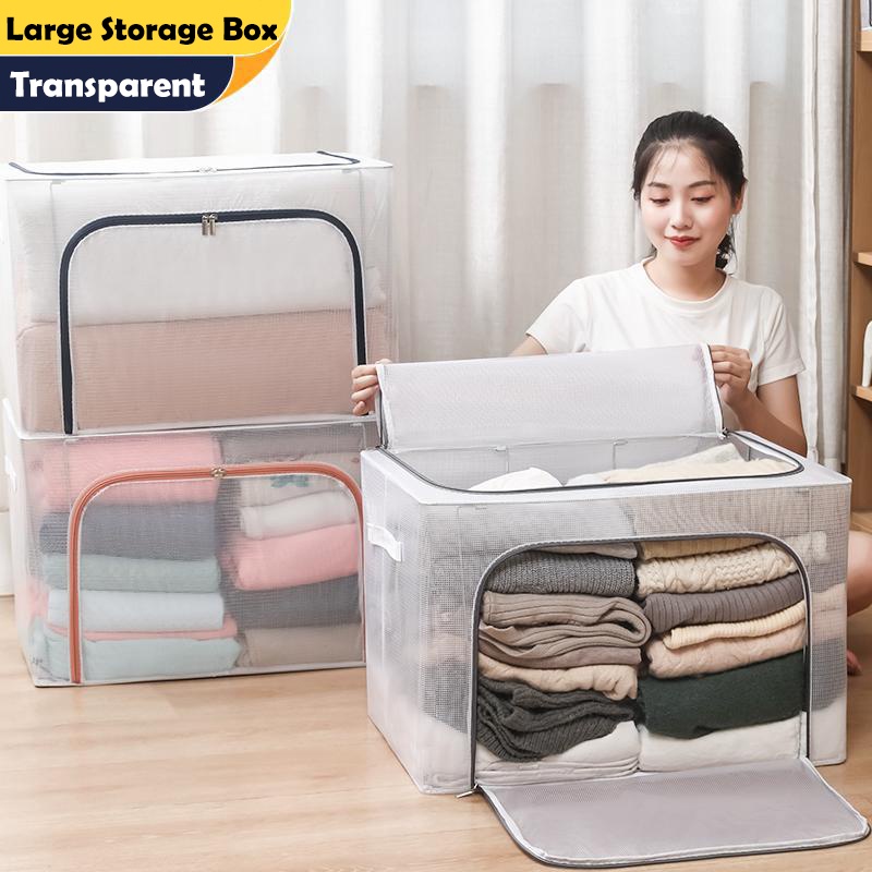 66L/100L New PVC Transparent Steel Shelf Storage Box Waterproof foldable organizer storage box COD