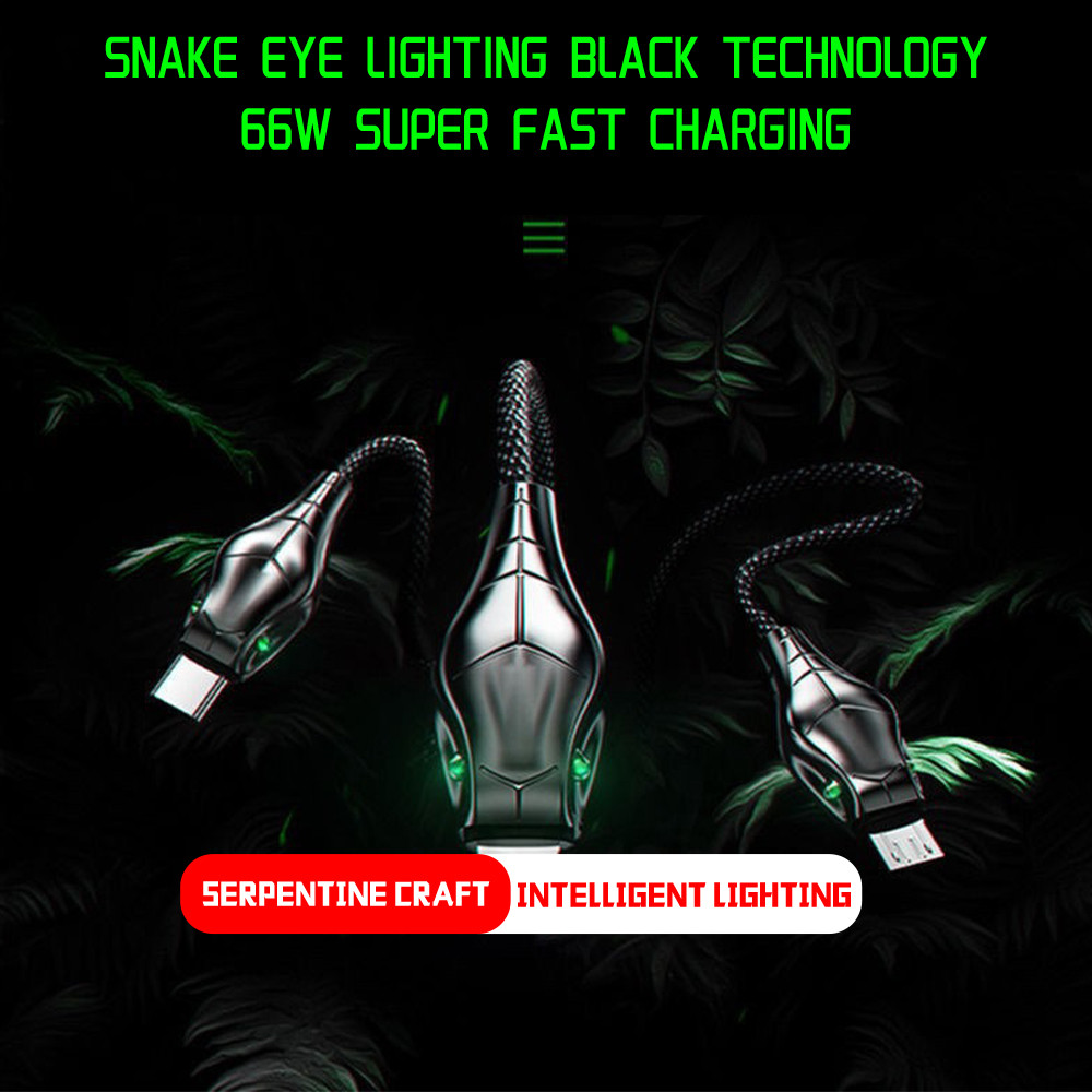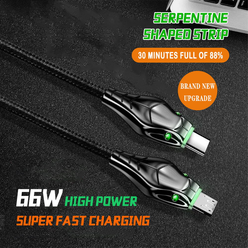 66W 5A Super Fast Charging Zinc Alloy Snake Head 1 2m with Light Data Cable For Charge Cable