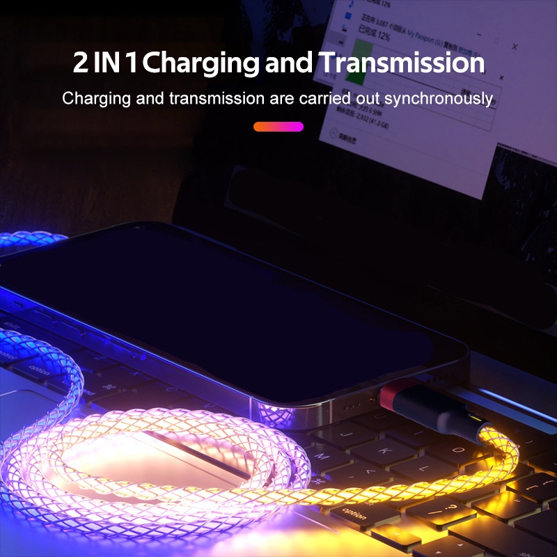 66W RGB Fast Charging Micro usb Type C Flow Colorful Streamer Glowing Cable for IPhone 11 12 13 14