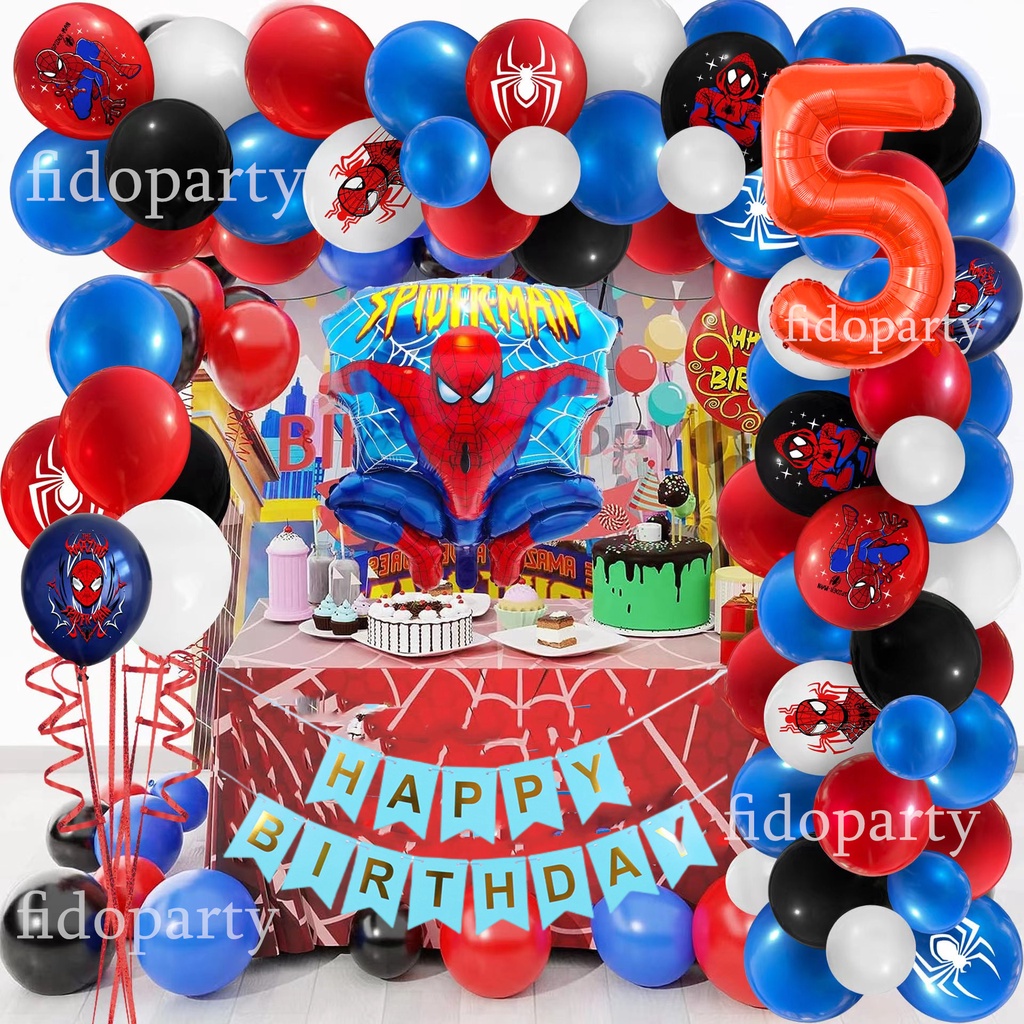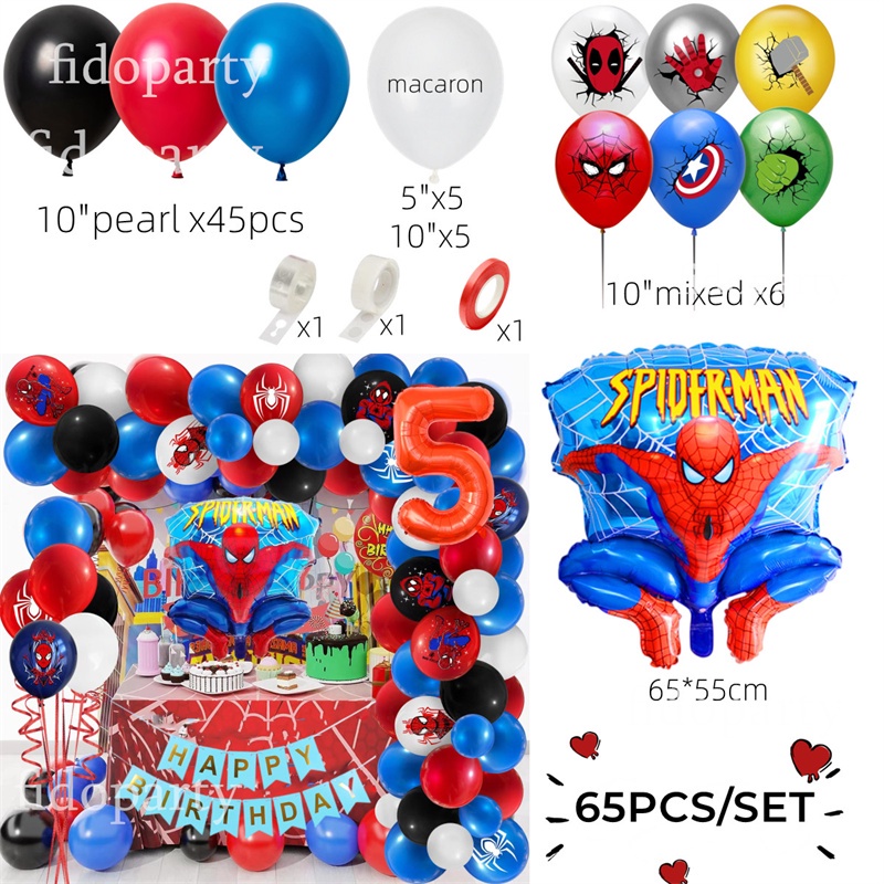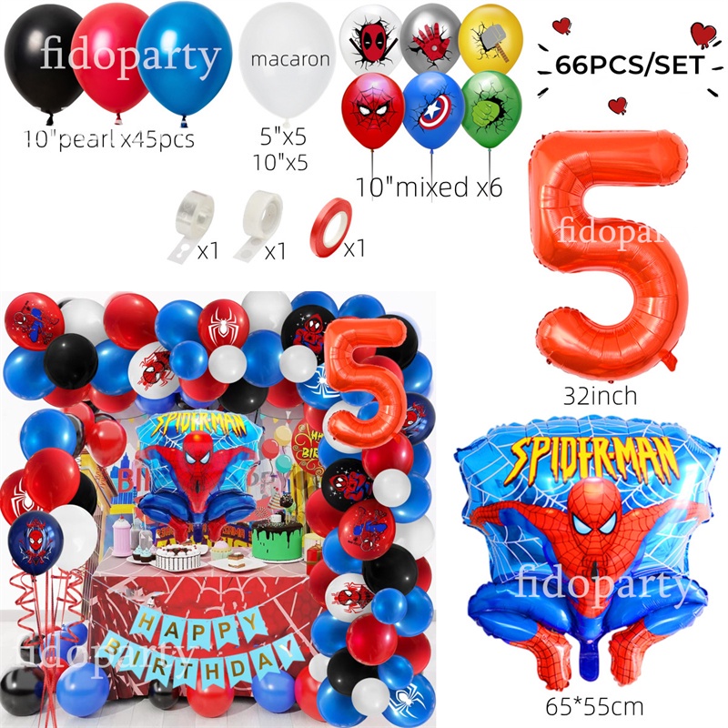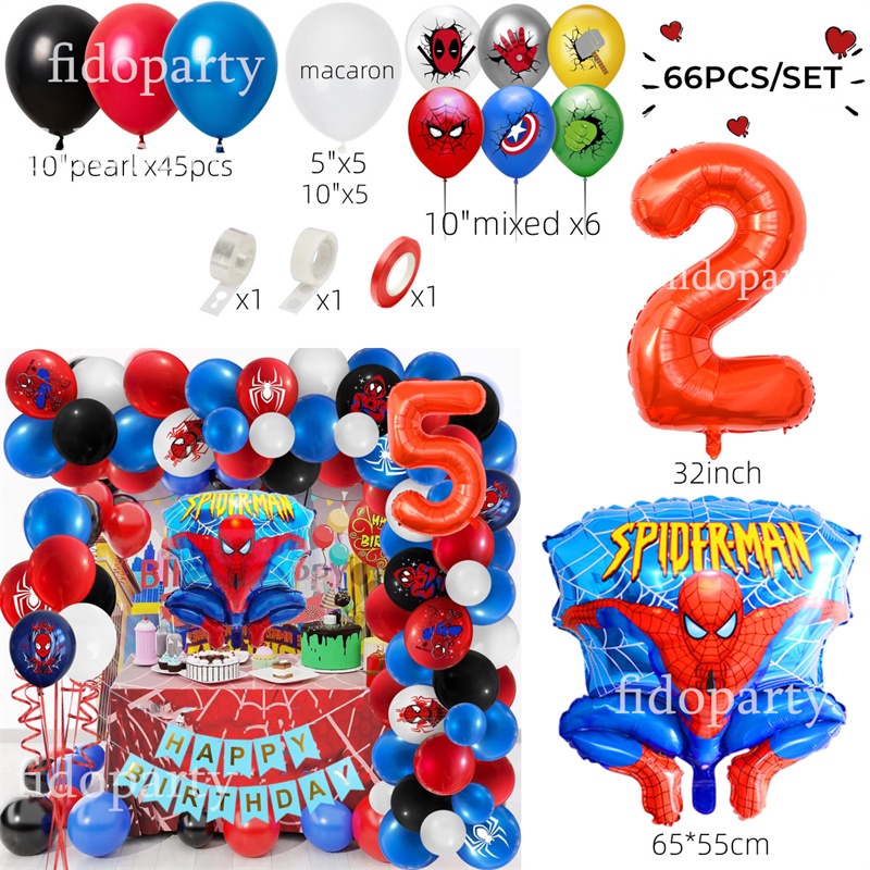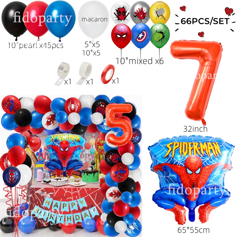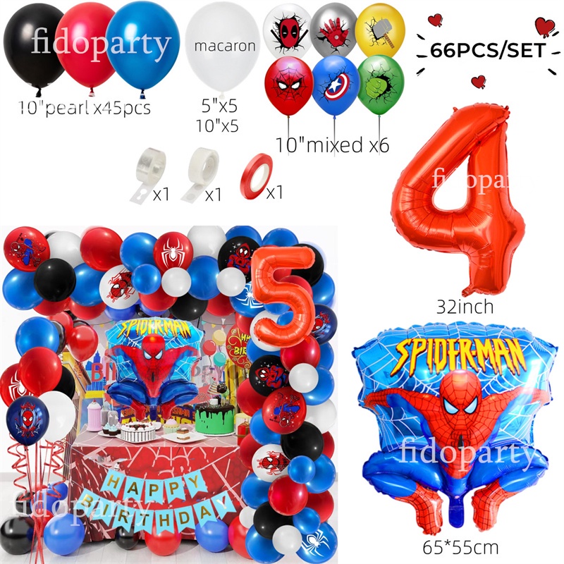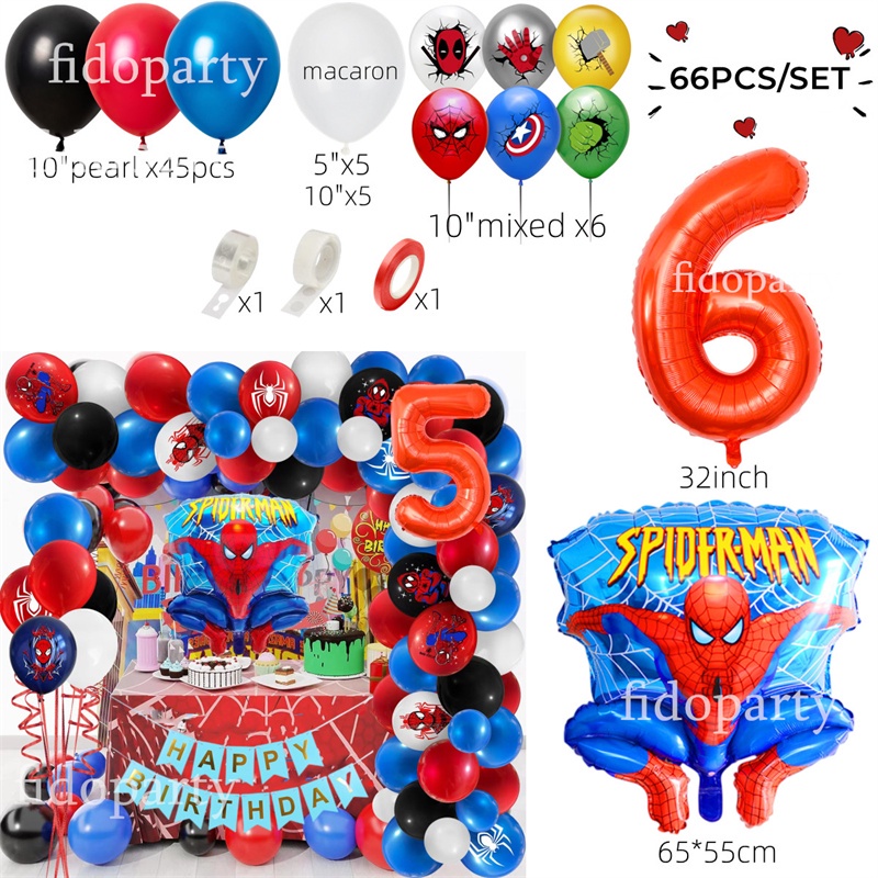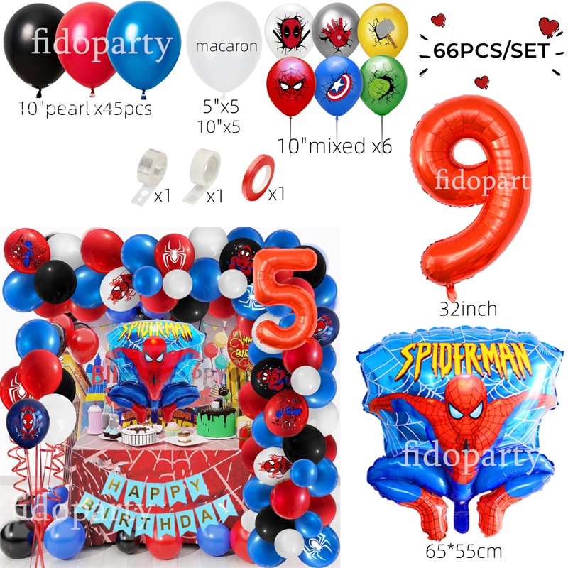 66pcs 3D Spiderman Red Blue Black Latex Balloon Garland Arch Kit 32" Number Superhero Theme Birthday Party Decoration Kids Toy