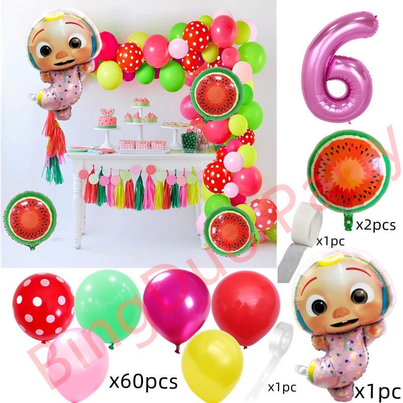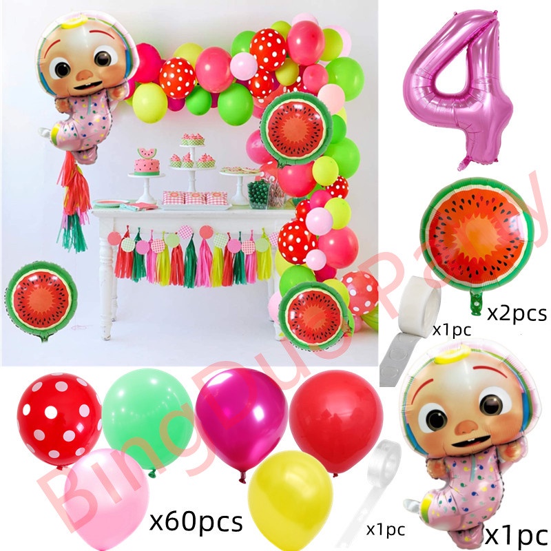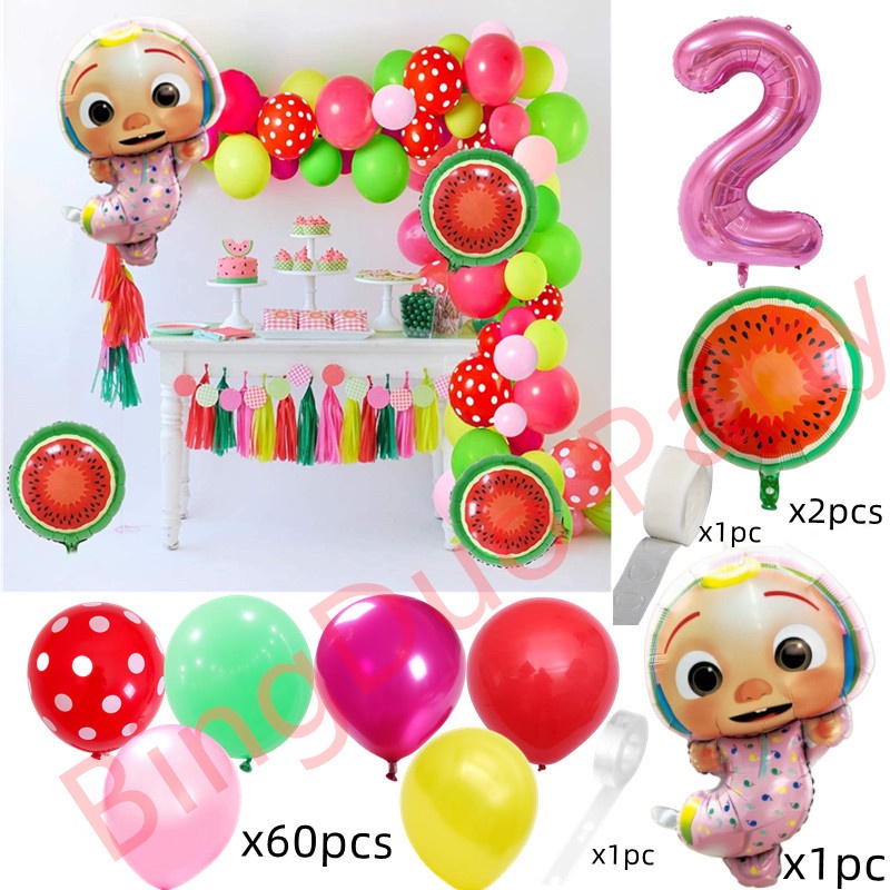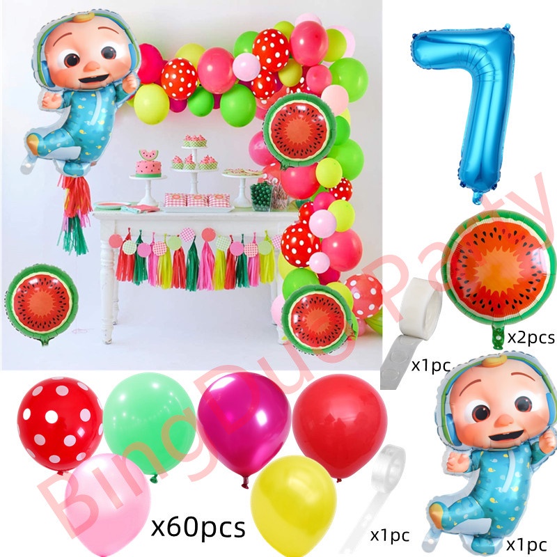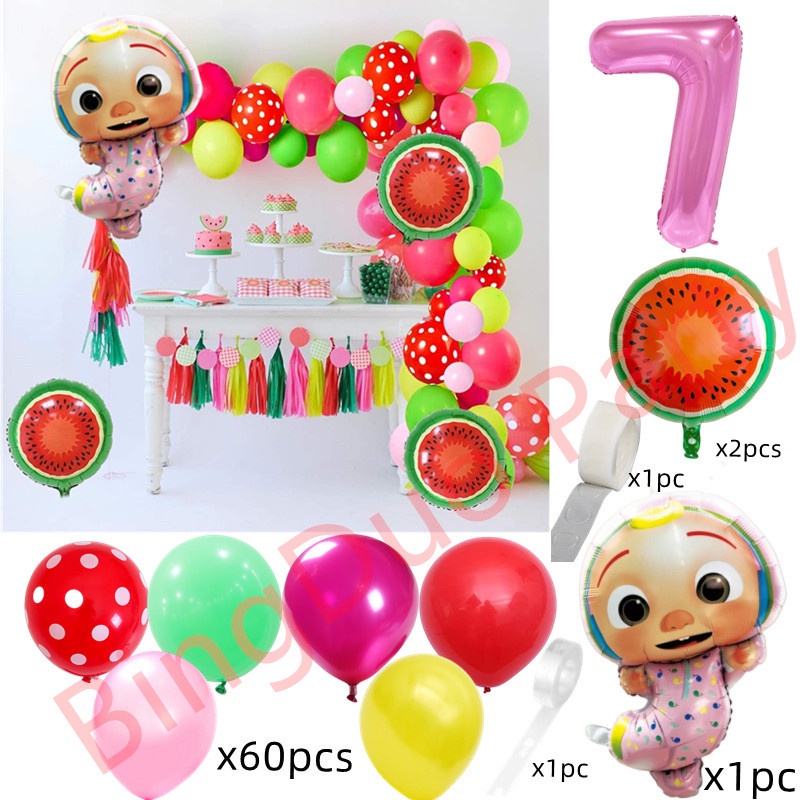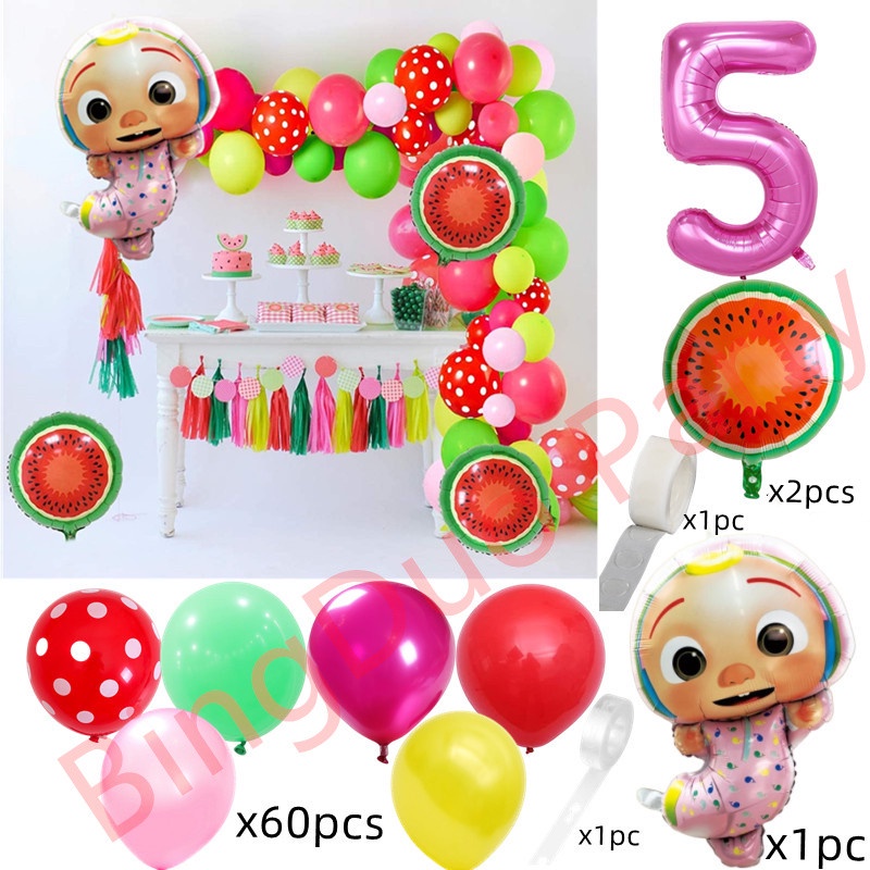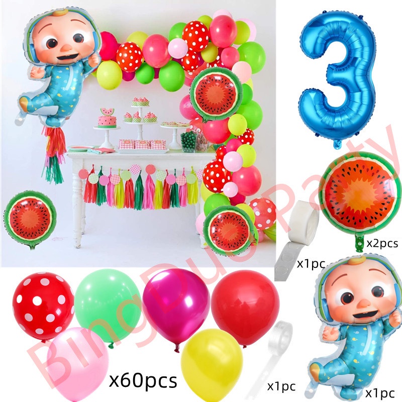 66pcs/set Cocomelon Theme JJ Foil Balloon 32" Pink Blue Number 1-9 Year-Old Balloons Set Baby Shower Party Decorations