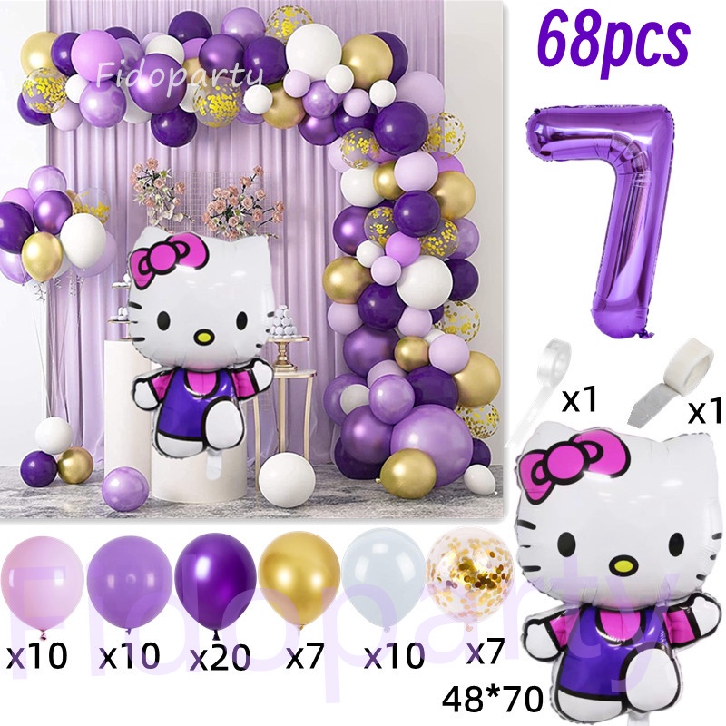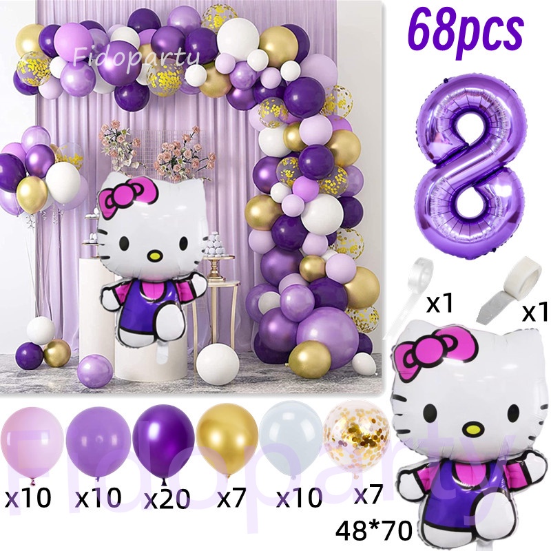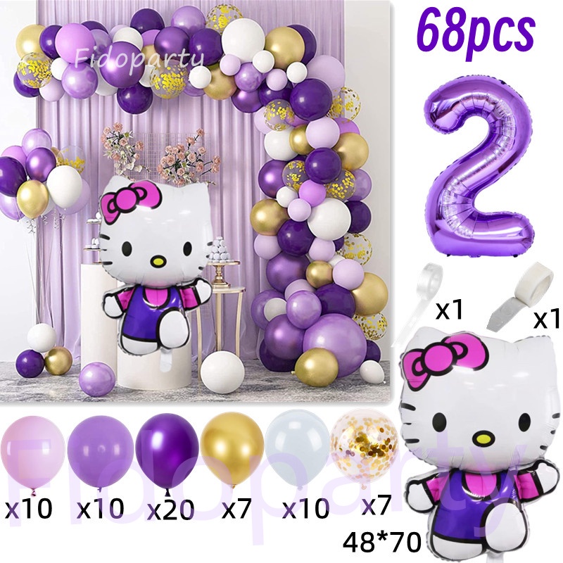 68pcs Hello Kitty Cat Foil Balloons Party Set Purple Hellokitty Girl Birthday Party Decorations Baby Shower Party Needs