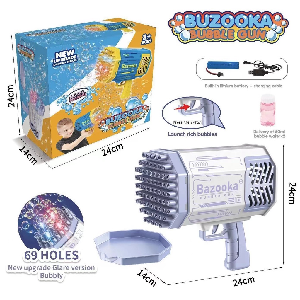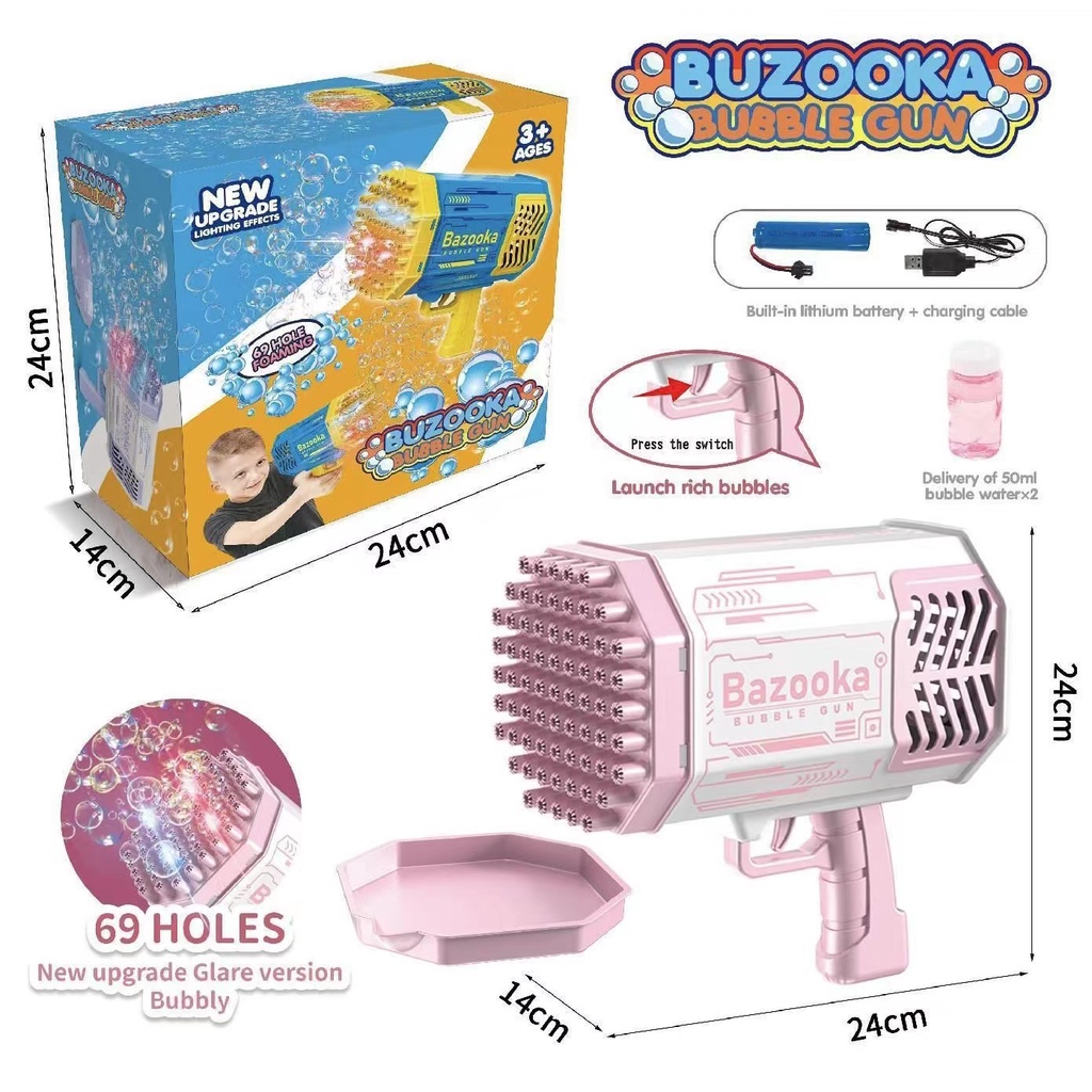 69 Holes Gatling Bubble Gun Charging Electric Automatic Rocket Launcher Bubble Machine Best Gift