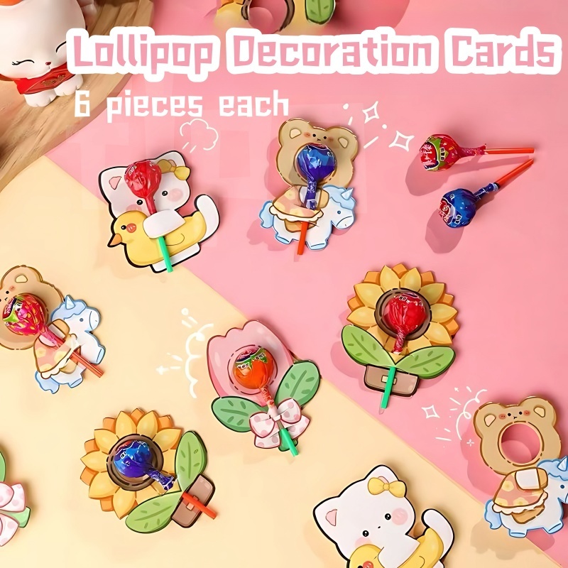 6Cards/Pack INS Cartoon Cute Creative Candy Lollipop Decoration Cards DIY Paper Cards Candy Cards