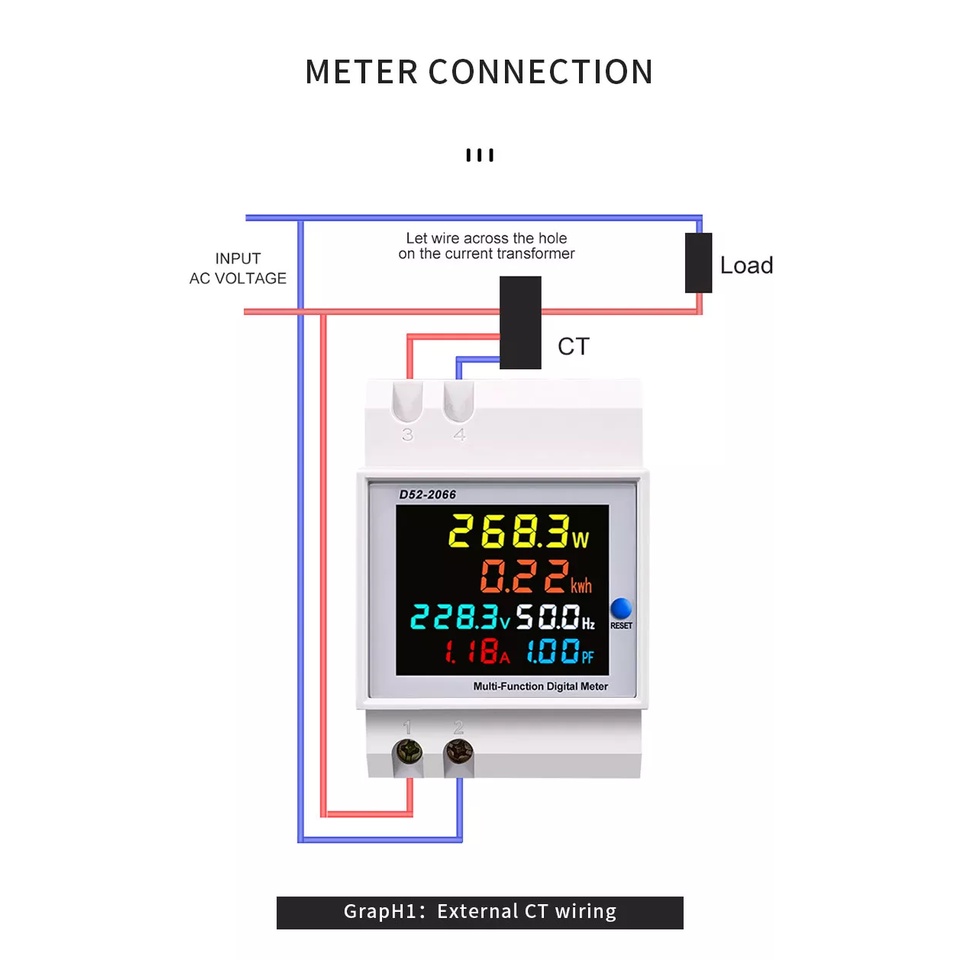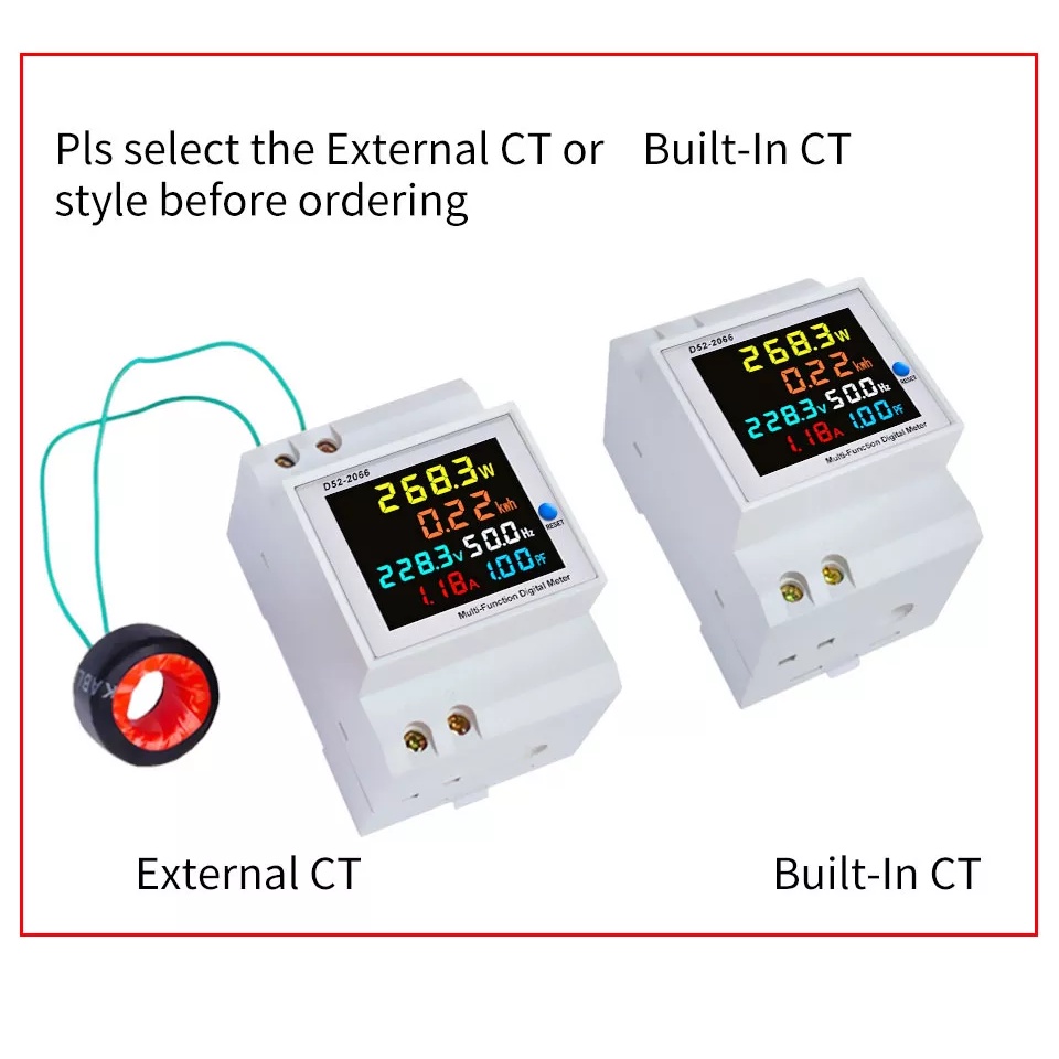 6IN1 din rail AC monitor 110V 220V 380V 100A Voltage Current Power Factor Active KWH Electric energy