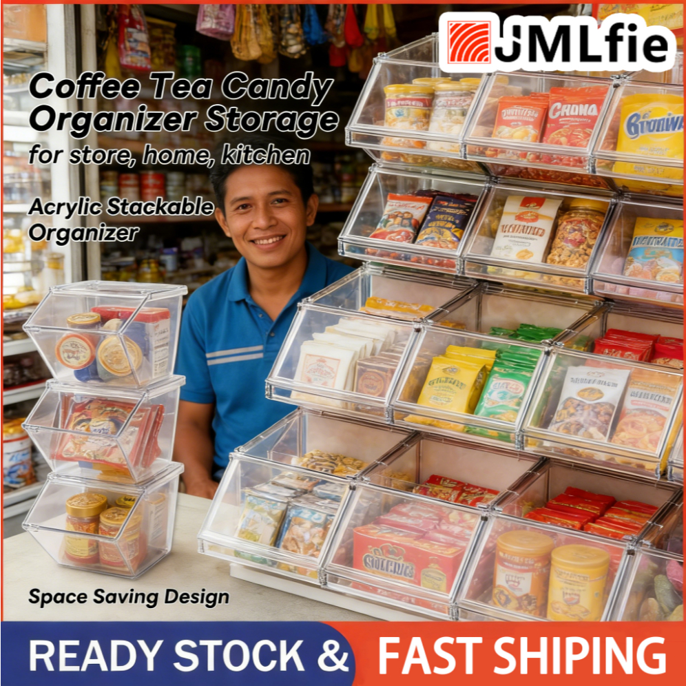 8PCS Clear Storage Box coffee tea Organizer Fliptop Lid Desktop storge box sari sari store organizer