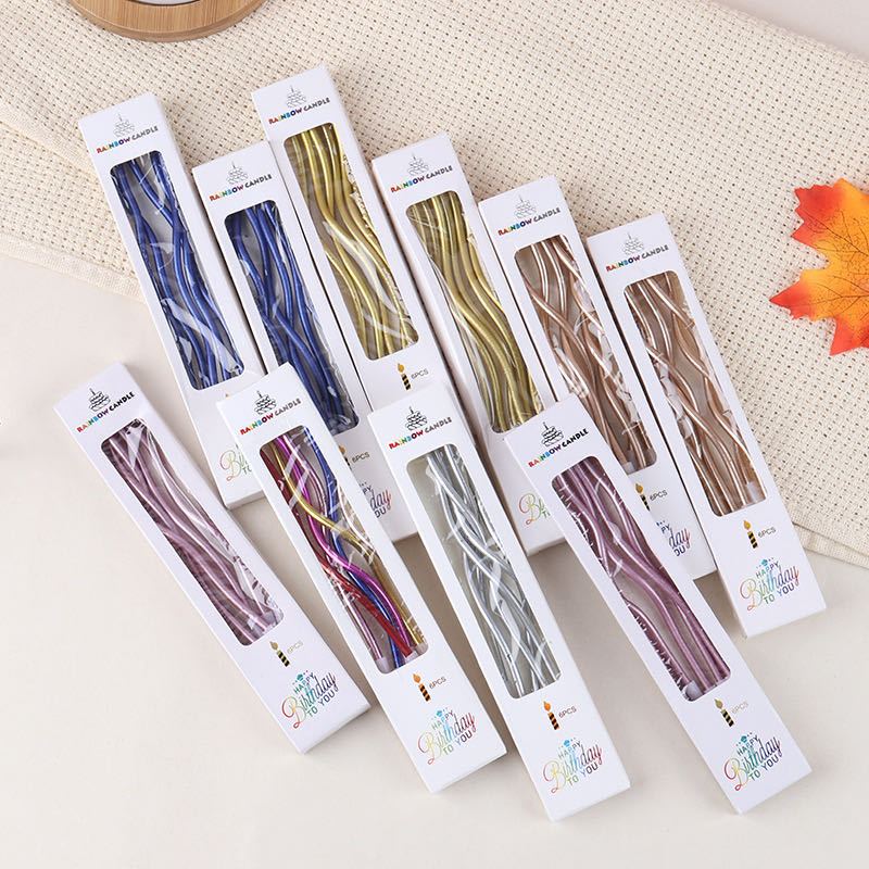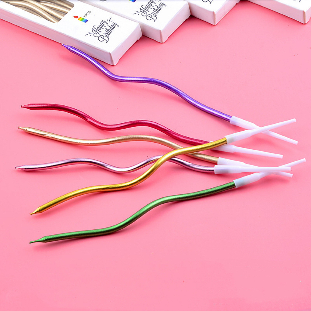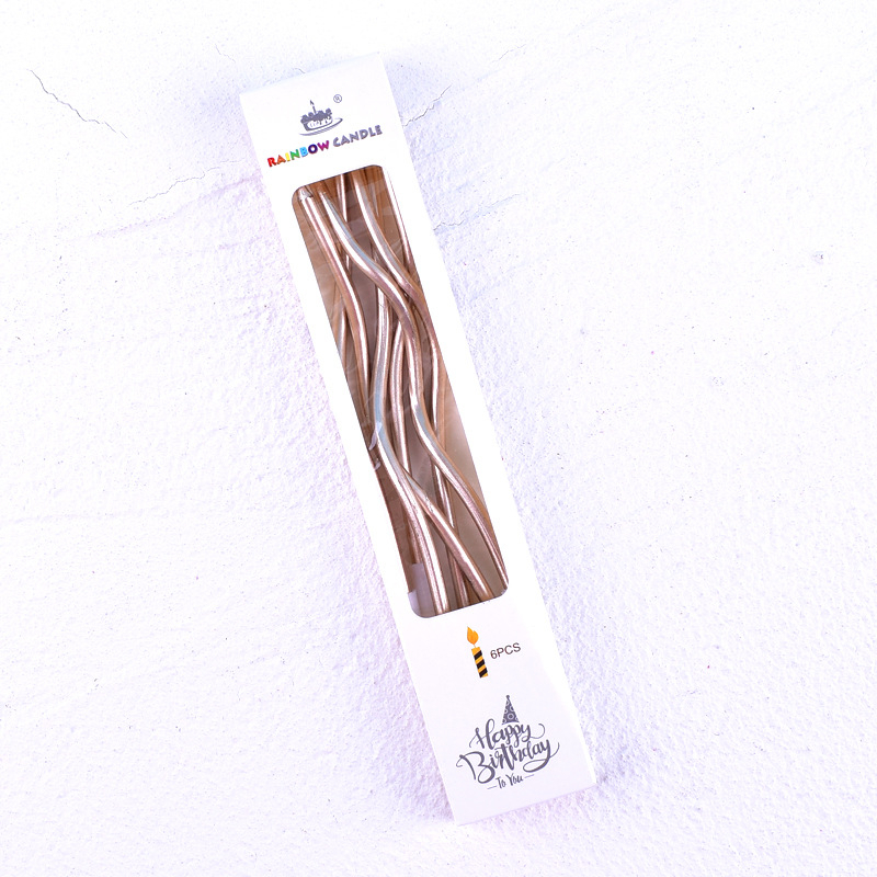 6PCS Metaliic Color spiral Candles birthday Candle Cake topper Decorating Supplies party go
