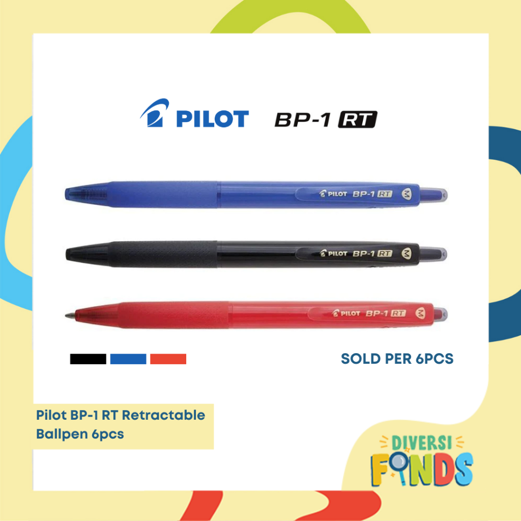 6PCS Pilot BP-1 RT Retractable Ballpen BP1 Pen - Black, Blue, Red