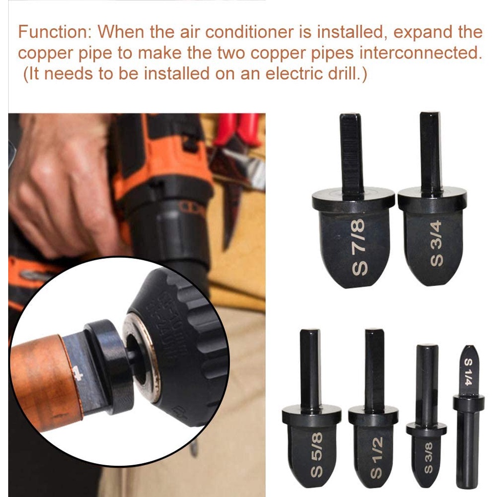 6PCS Professional Puxing Swaging Tool Drill Bit Set Manual Copper Pipe Swage Tool with Triangular
