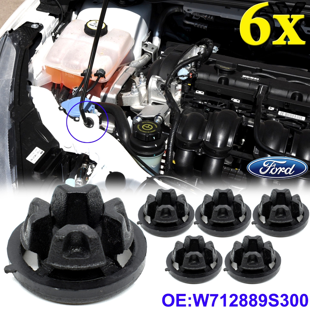 6Pcs Car Bonnet Hood Support Clips Prop Rod Clamp Holder Grommets Fasteners For Ford Focus C-Max Mondeo Fusion Escape Kuga Auto Plactic Rivet