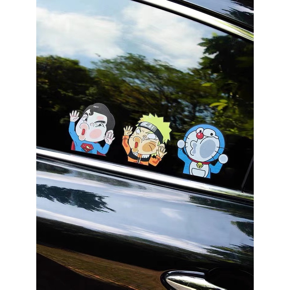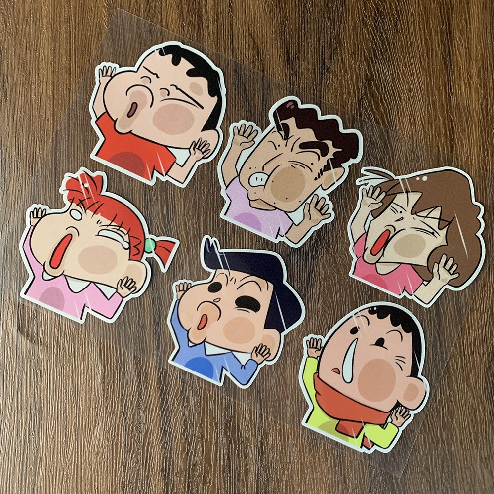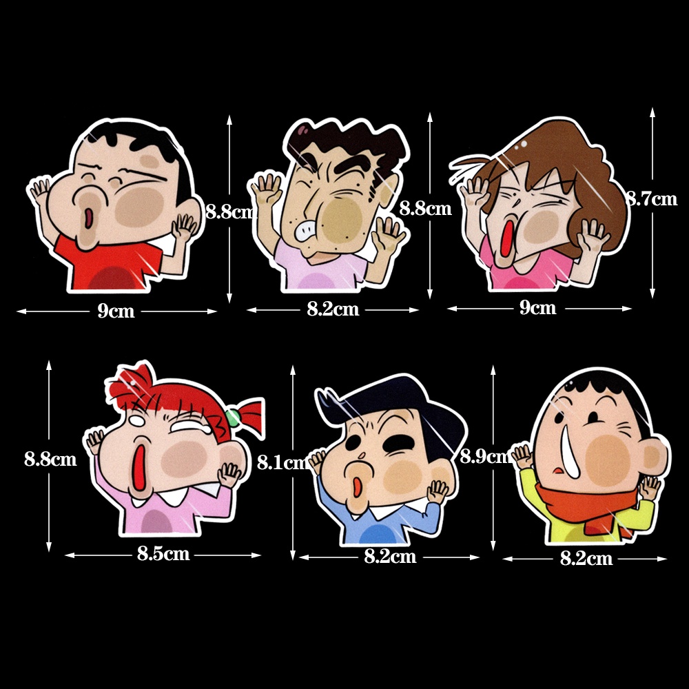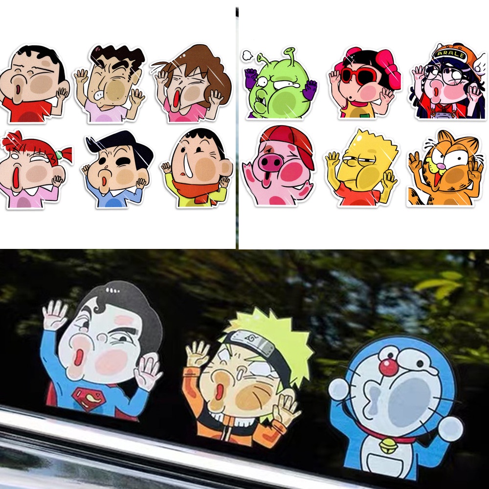 6Pcs Car Sticker Funny Car Sticker Crayon Shin-chan Auto Window Door Face Is Squeezed Face Deformation Sticker Motorcycle Naruto Crayon Shin-chan Cartoon Decoration Scratc