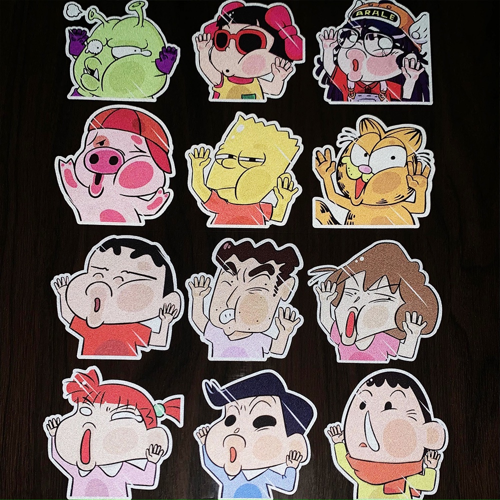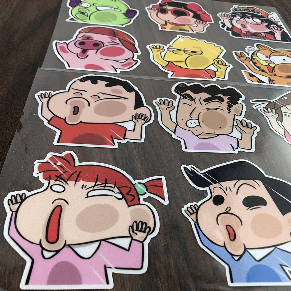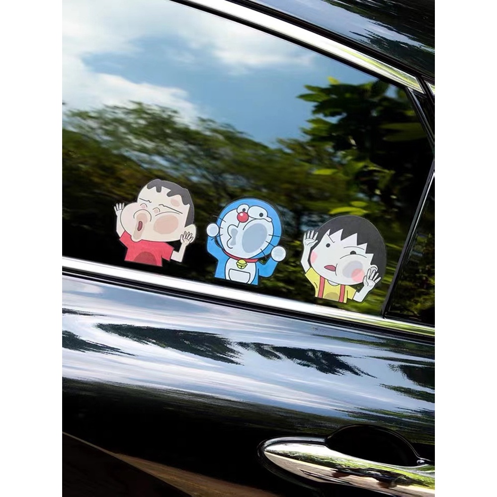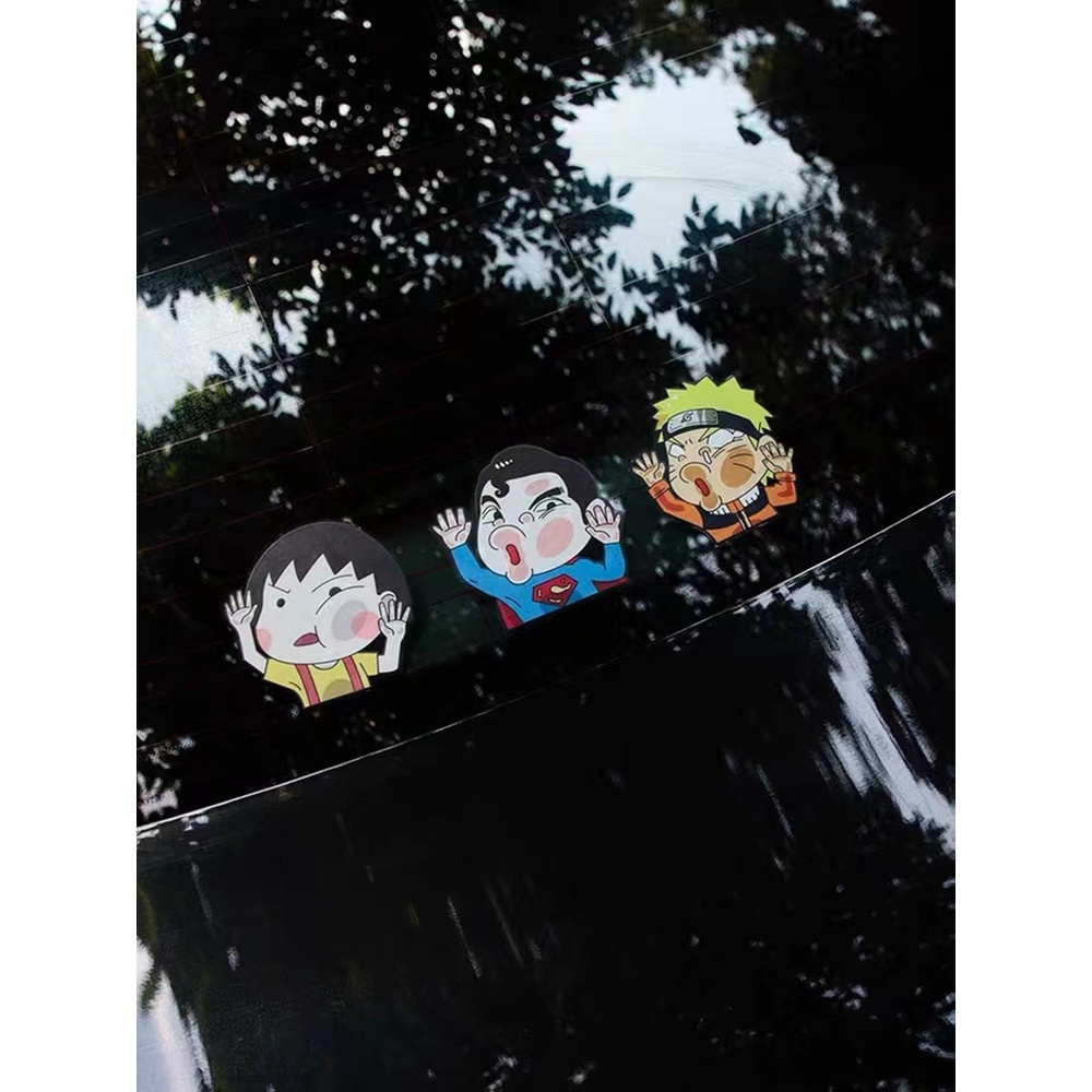6Pcs Car Sticker Funny Car Sticker Crayon Shin-chan Auto Window Door Face Is Squeezed Face Deformation Sticker Motorcycle Naruto Crayon Shin-chan Cartoon Decoration Scratc