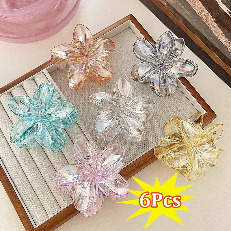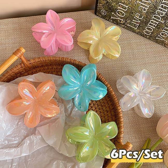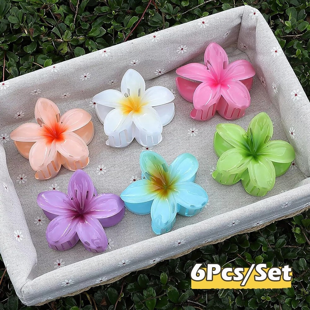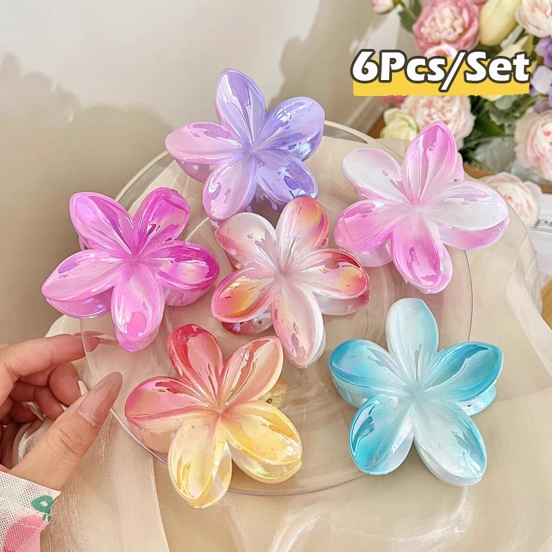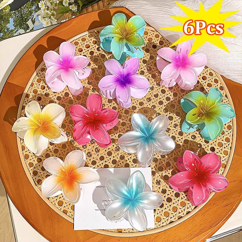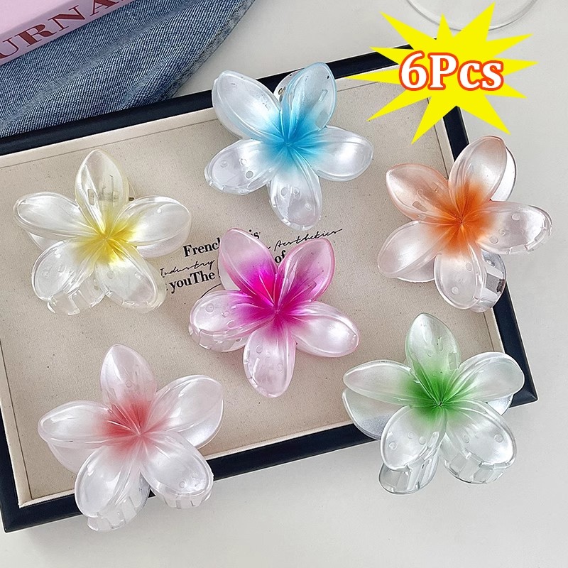 6Pcs Colorful Flower Hair Clamp Set Mermaid Frangipani Hair Claw Clip for Women Hair Accessories