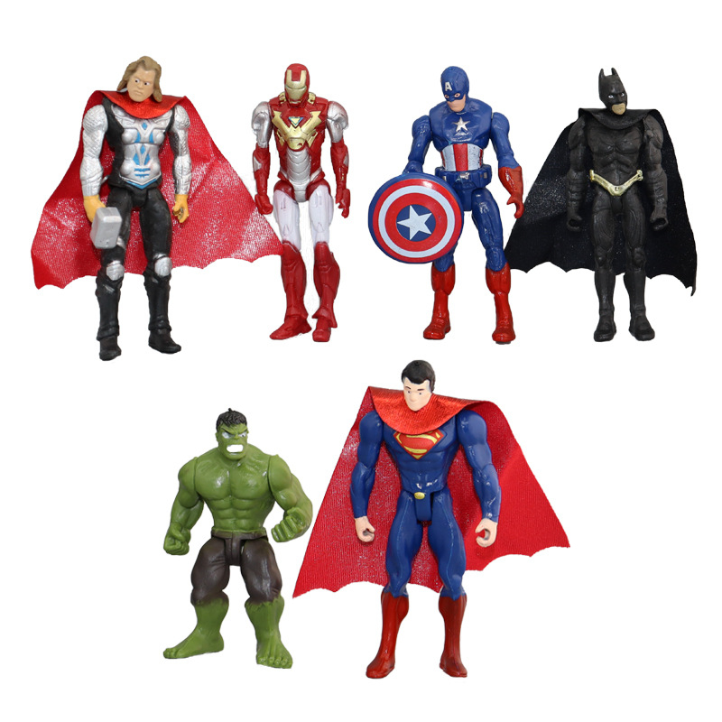 6Pcs/Set 8-10cm Anime The avengers Iron Man Thor Hulk Captain America Superman Batman PVC Action Figures Model Doll Collection Toys Kids Gifts