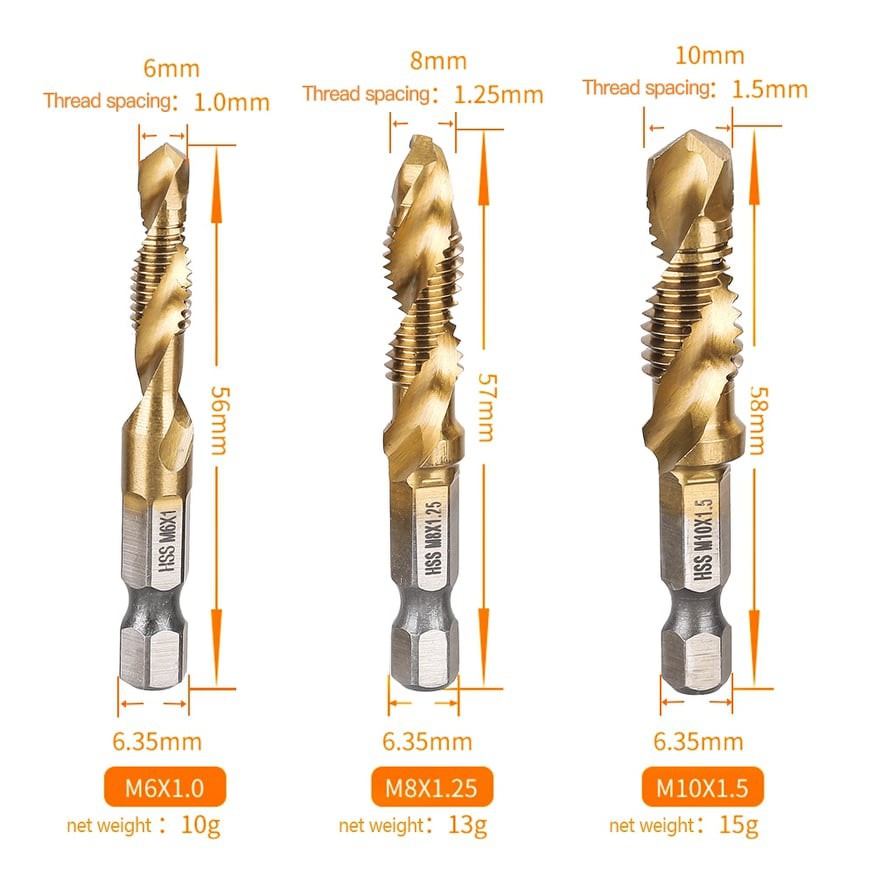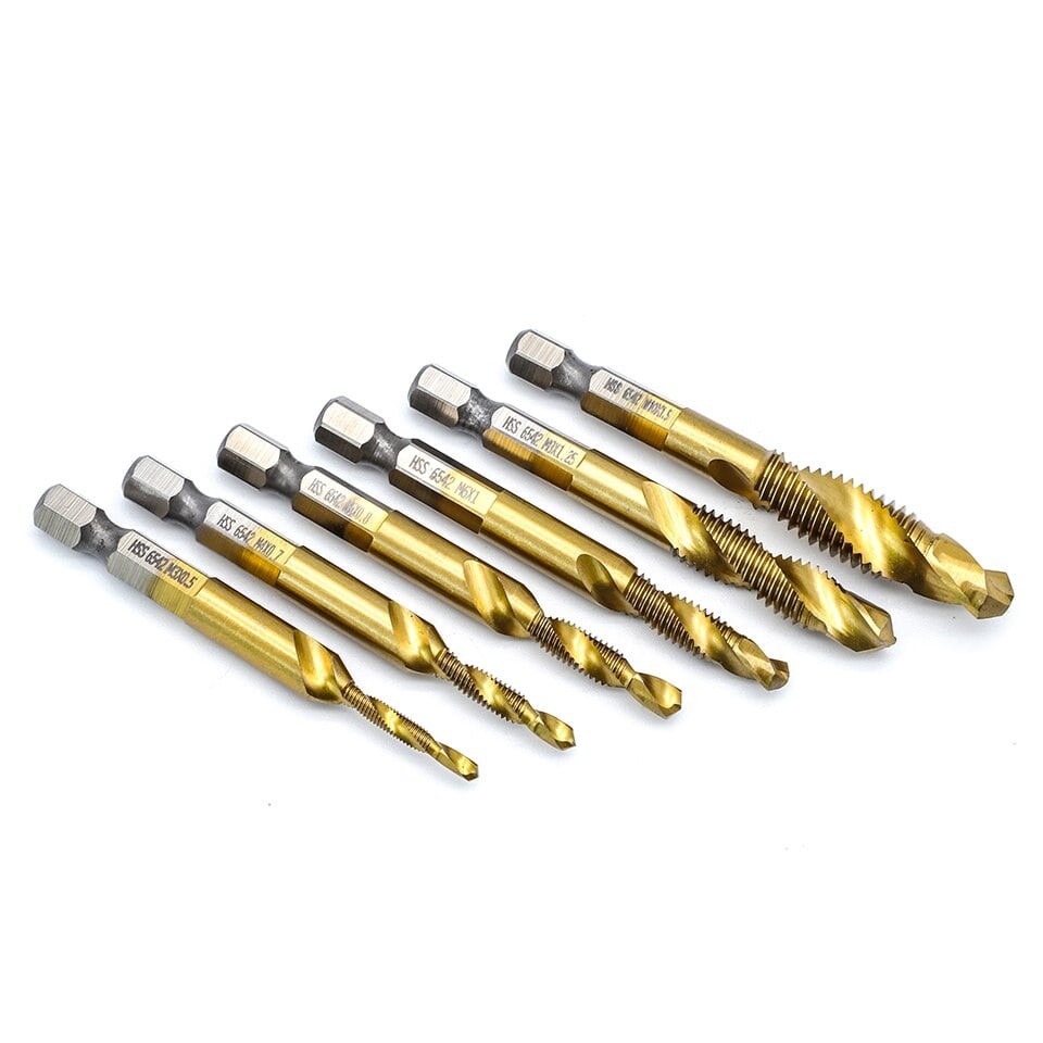 6Pcs/Set Hex Shank Metric Thread Tap Drill Bit Set M3 M4 M5 M6 M7 M8 M10 Screw Tap For Metal Wood