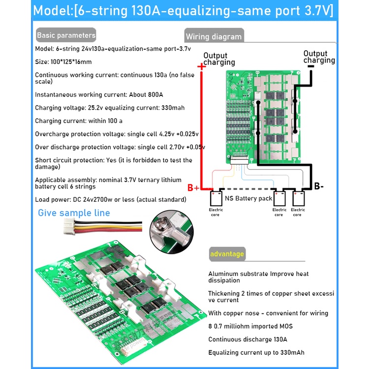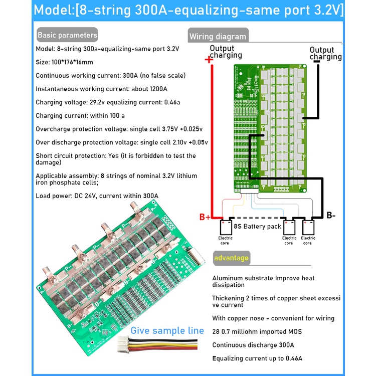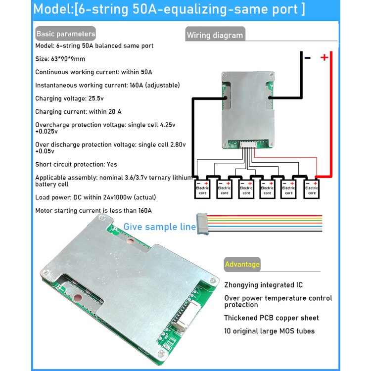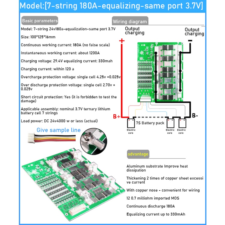 6S 7S 8S 24V 50A 100A 130A 180A 230A 300A BMS 18650 Li-ion Lifepo4 Lithium Battery Protection Board Balance high current FOR electrical tool RV Inverter solar lighT