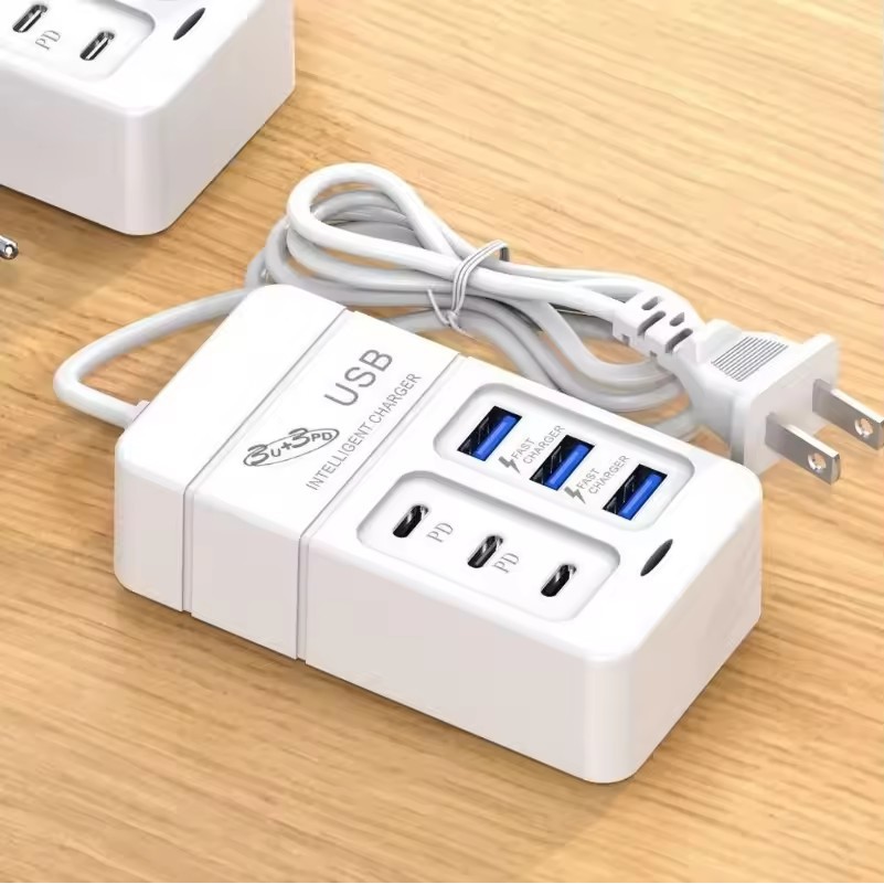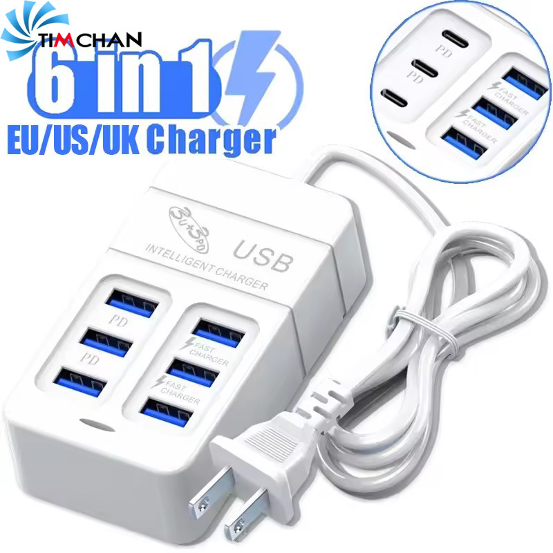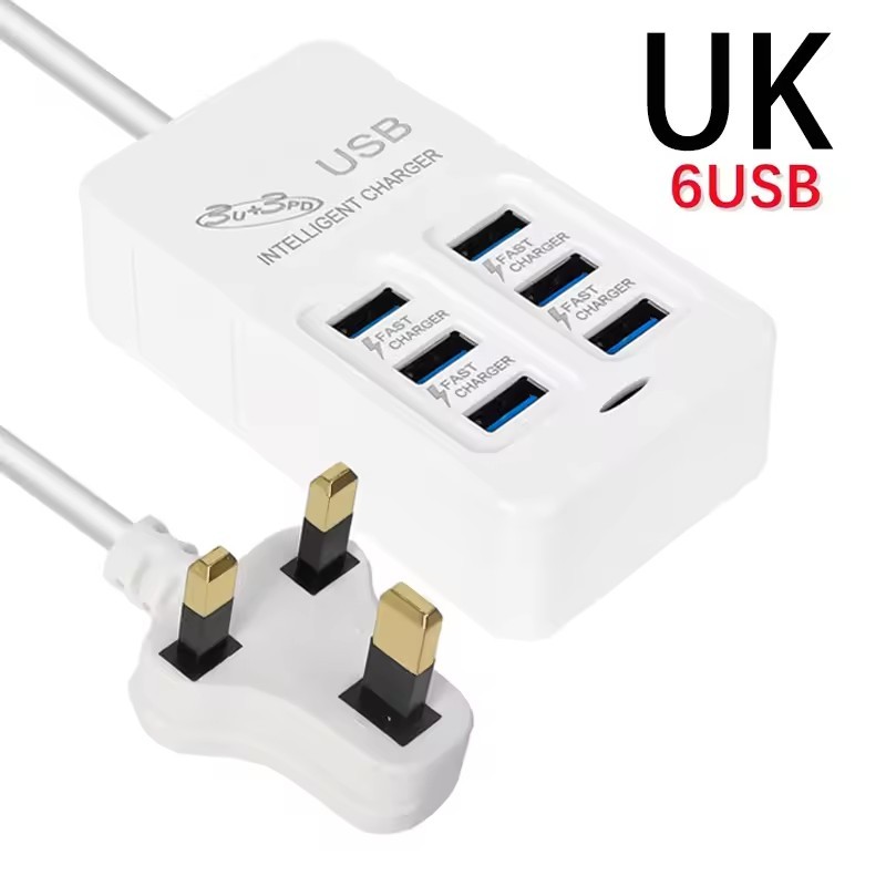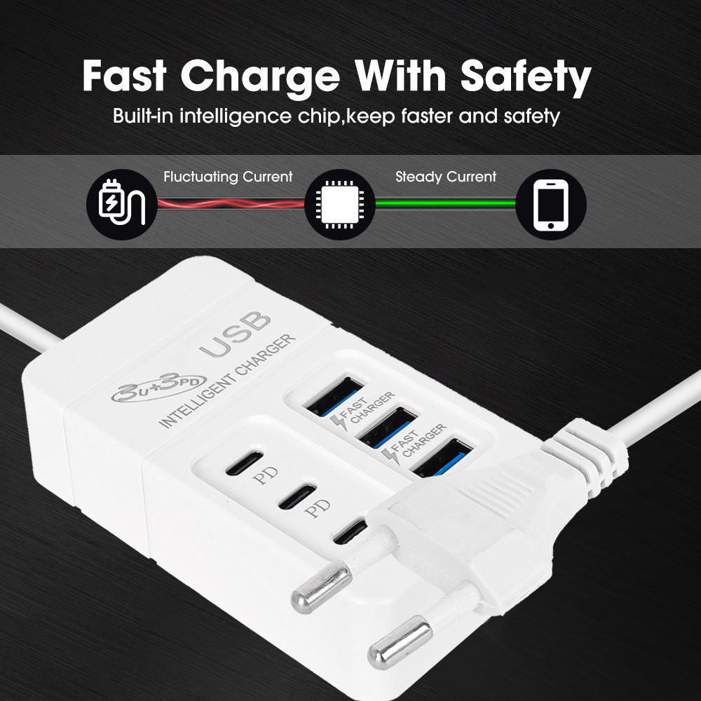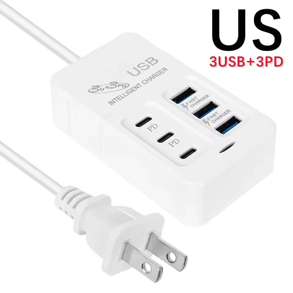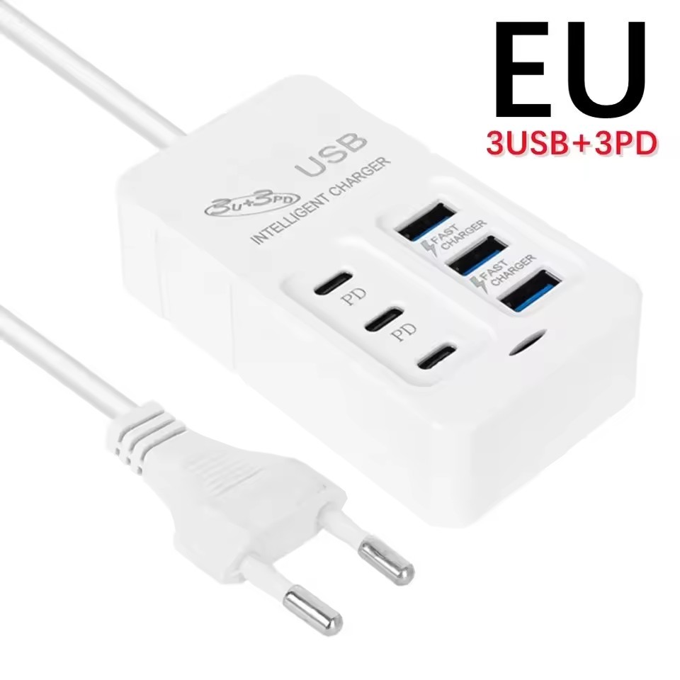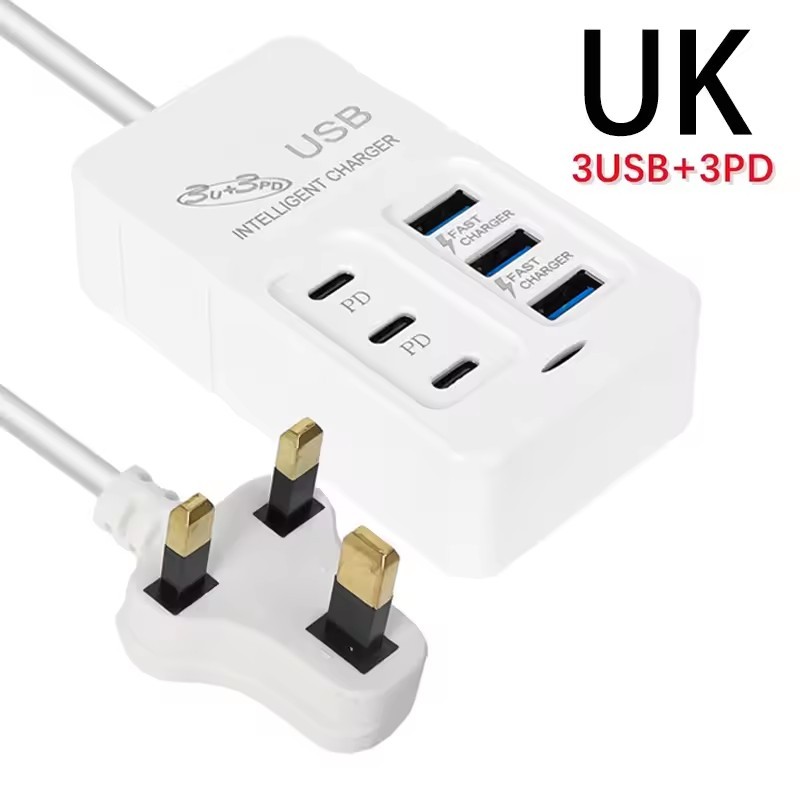 6USB 3USB-A+3USB-C Socket Outlet - 6 Ports PD USB Travel Charger - UK/EU/US Extension Cord Electrical Socket - Plug Adapter - 35W Quick Charging Wall Hub