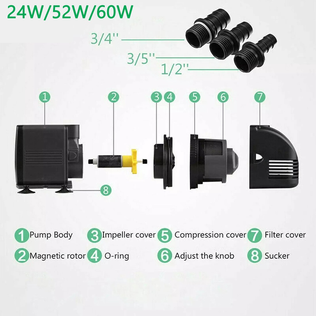 6W 24W 52W 60W Submersible Aquarium Water Pump Fish Tank Powerhead Fountain Hydroponic Pond Air Pump