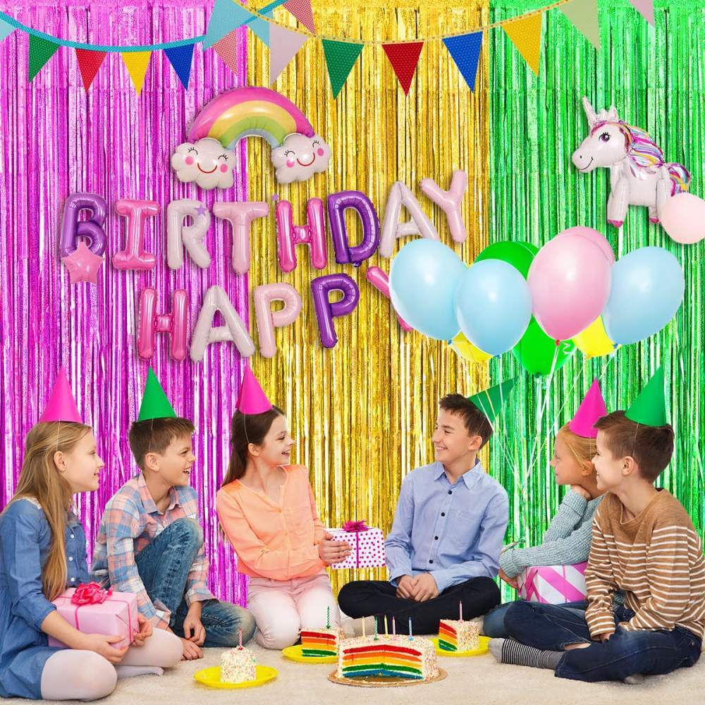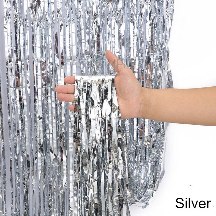 6X3Ft Foil Fringe Curtains Backdrop Party Decorations Themed For Wedding Birthday Christening Event