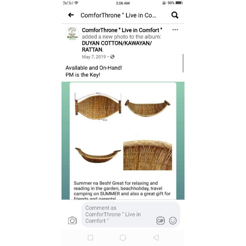 6ft DUYAN RATTAN FREE VARNISH/UWAY DOUBLE SIZE/HAMMOCK/DUYAN UWAY