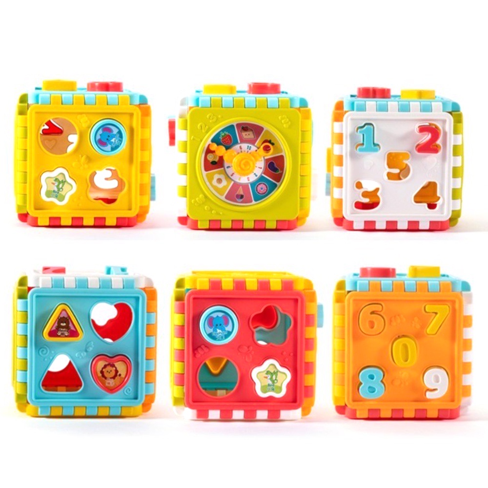 6in1 Early Learning Building Blocks Activity Cube Educational Toy (Shape and Number Matching, Clock)