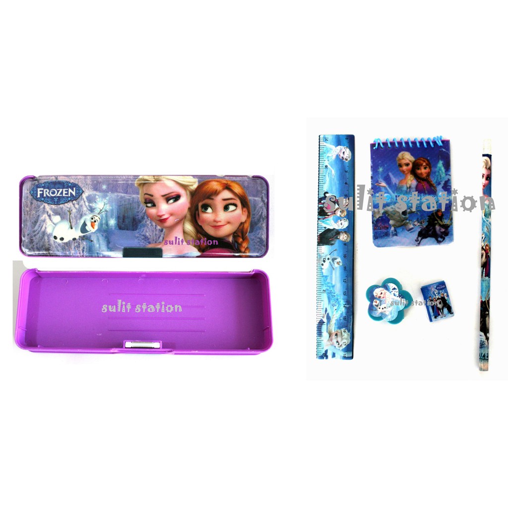 6in1 FROZEN ELSA ANNA MAGNETIC PENCIL CASE with SCHOOL STATIONARY GIFT SET