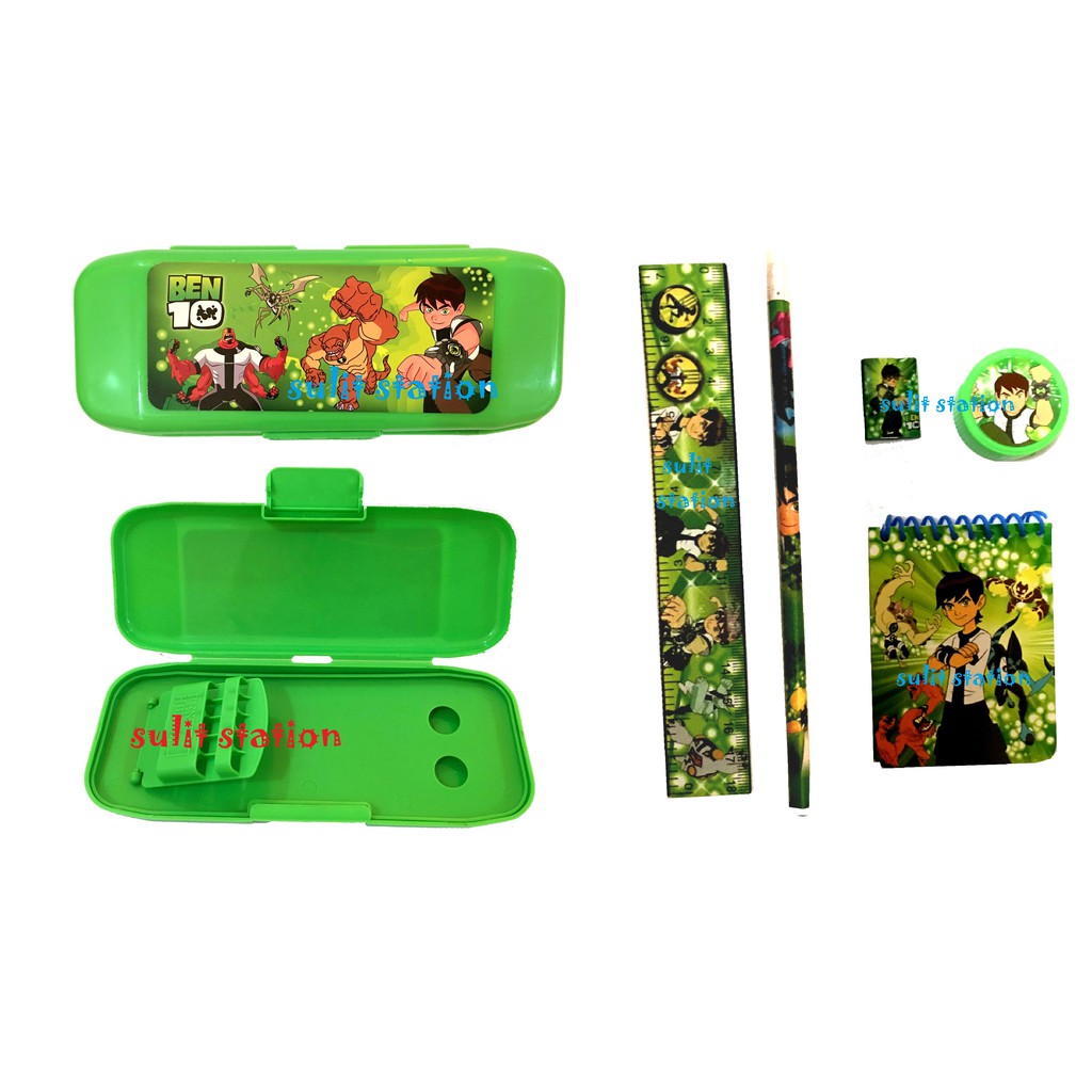 6in1 HELLO KITTY BEN 10 BEN10 TEN CHARACTER PENCIL CASE BOX with SCHOOL PENCIL RULER ERASER GIFT SET