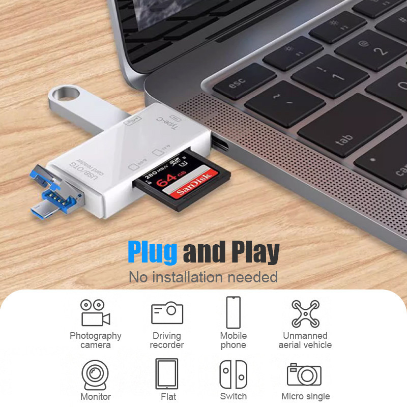 6in1 USB Multifunctional Type-C Card Reader Computer Phone OTG Card Reader USB Adapter SD TF Android
