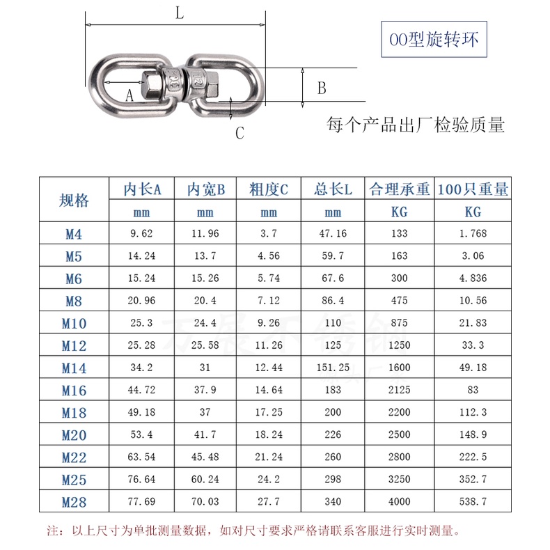 6mm-10mm Stainless Steel Double Head Rotating Ring Marine Hanging Chain Lift 20 x 20Cm