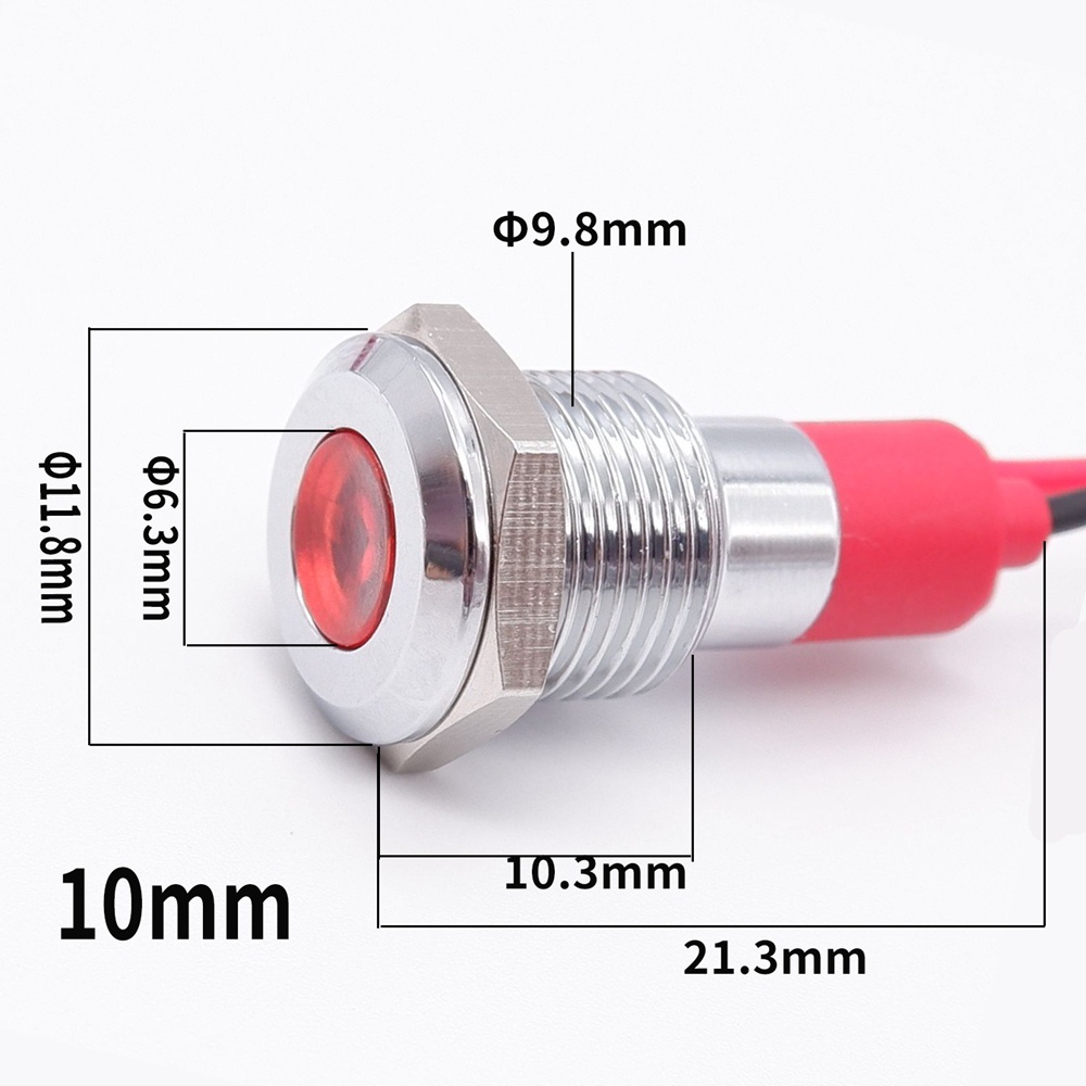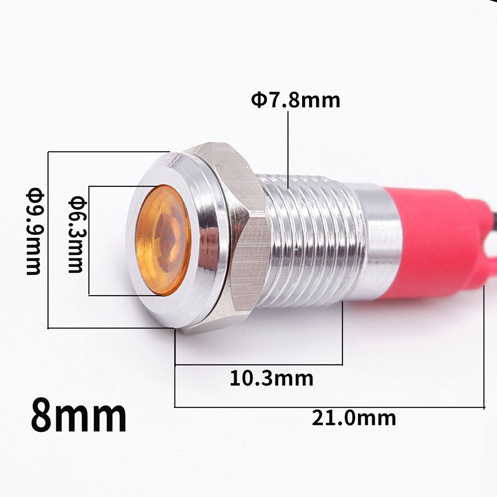 6mm 8mm 10mm 12mm Metal LED Warning Indicator Light Signal Lamp Pilot Wire 3V 5V 12V 24V 110V 220V Red Orange Green Blue White