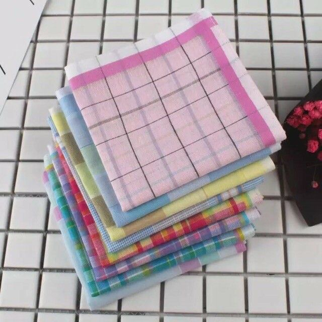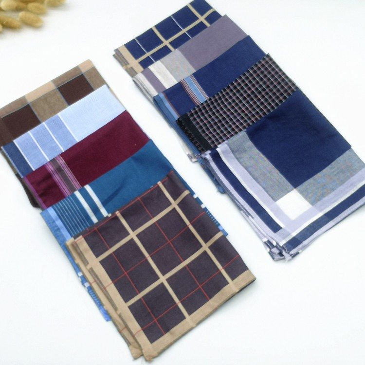 6pcs/12pcs Handkerchief Fashion Checkered And Plain Handkerchief Cotton Assorted Design And Color