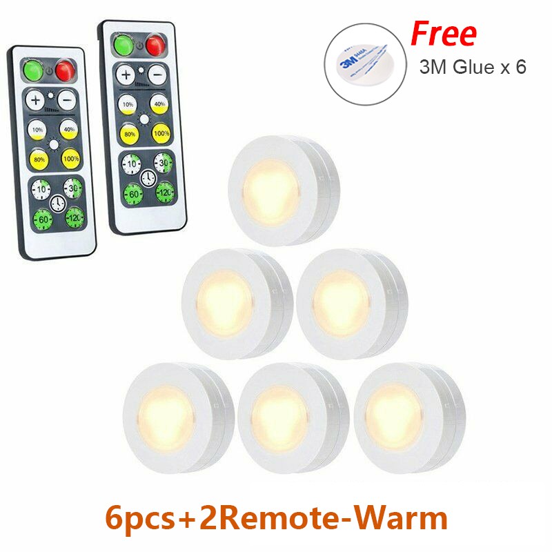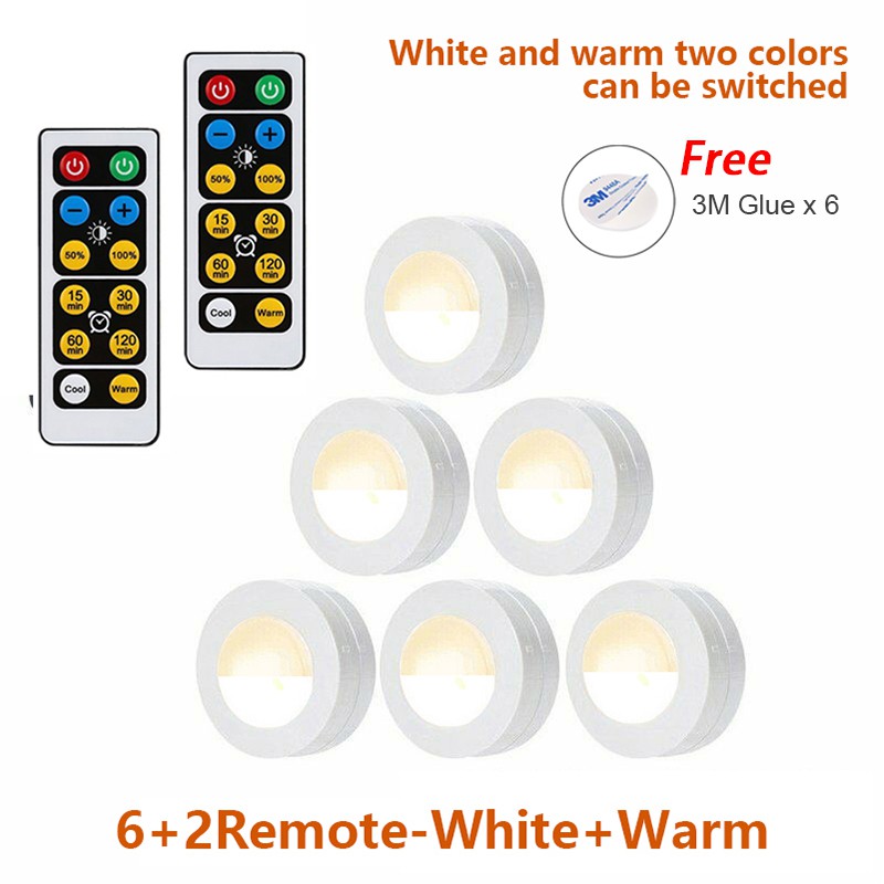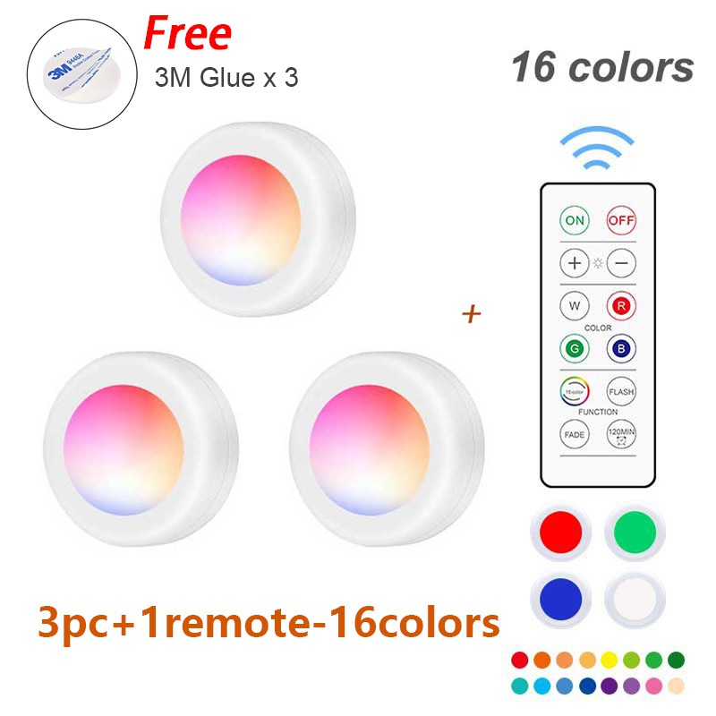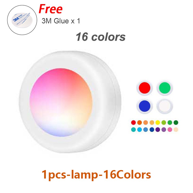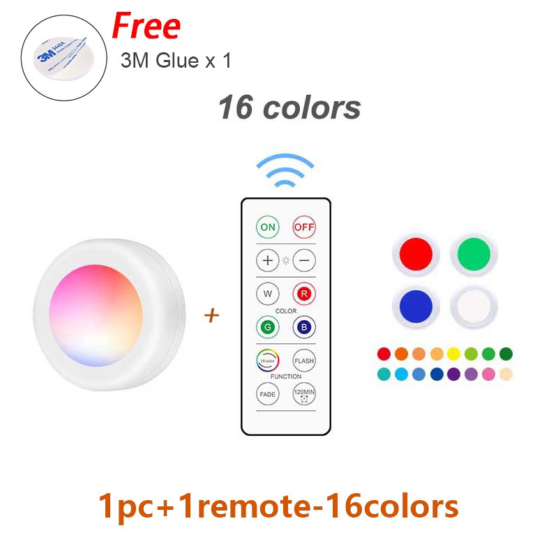 6pcs 16Colors LED Remote Control Night Light Wireless Smart Puck Light LED Wall Lamp 3AAA Battery Powered Cabinet Light Wardrobe lights Closet Lights
