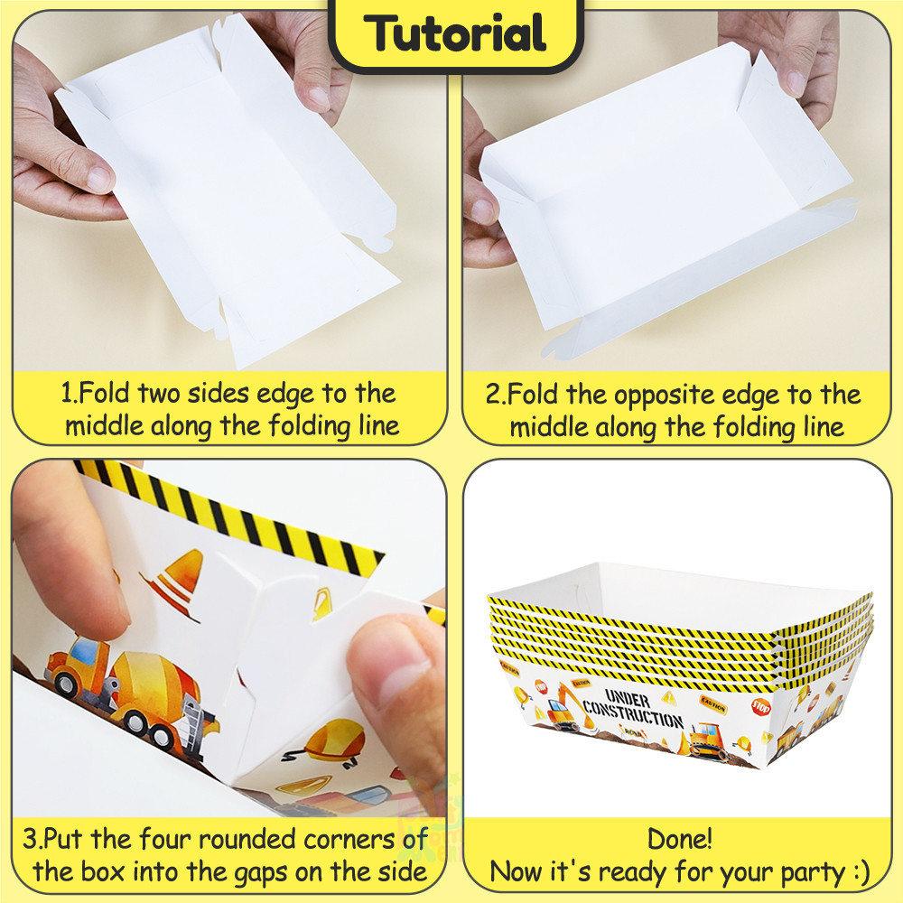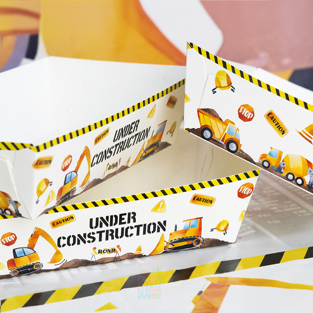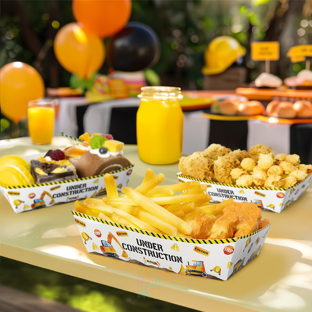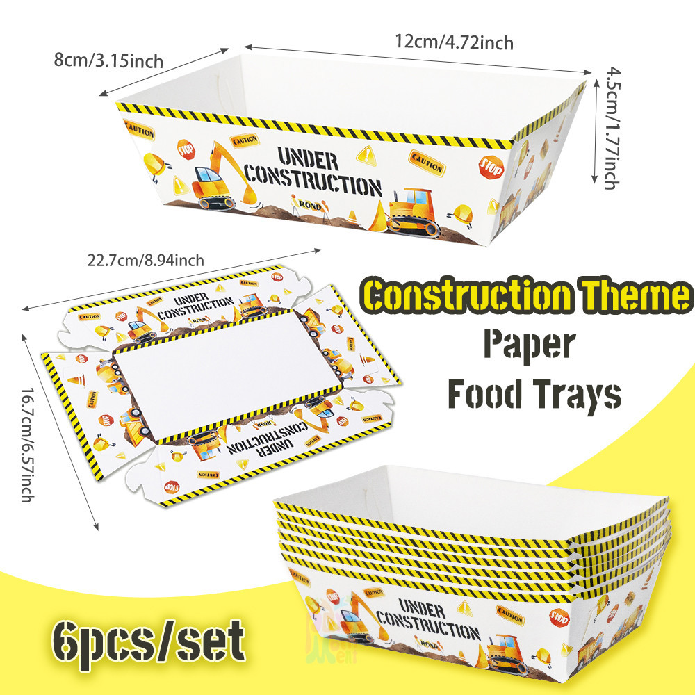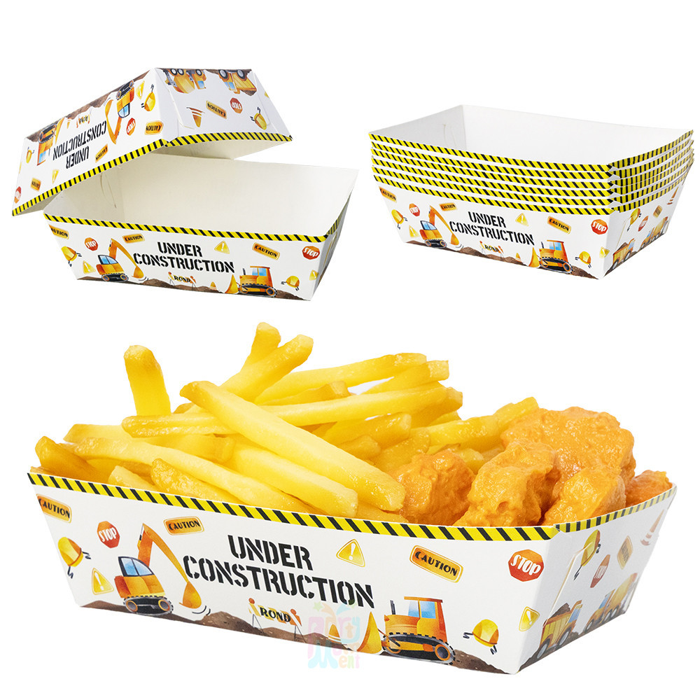 6pcs Construction Theme Food Trays Excavator Bulldozer Fries Paper Tray for Kids Birthday Party Supplies Snack Box