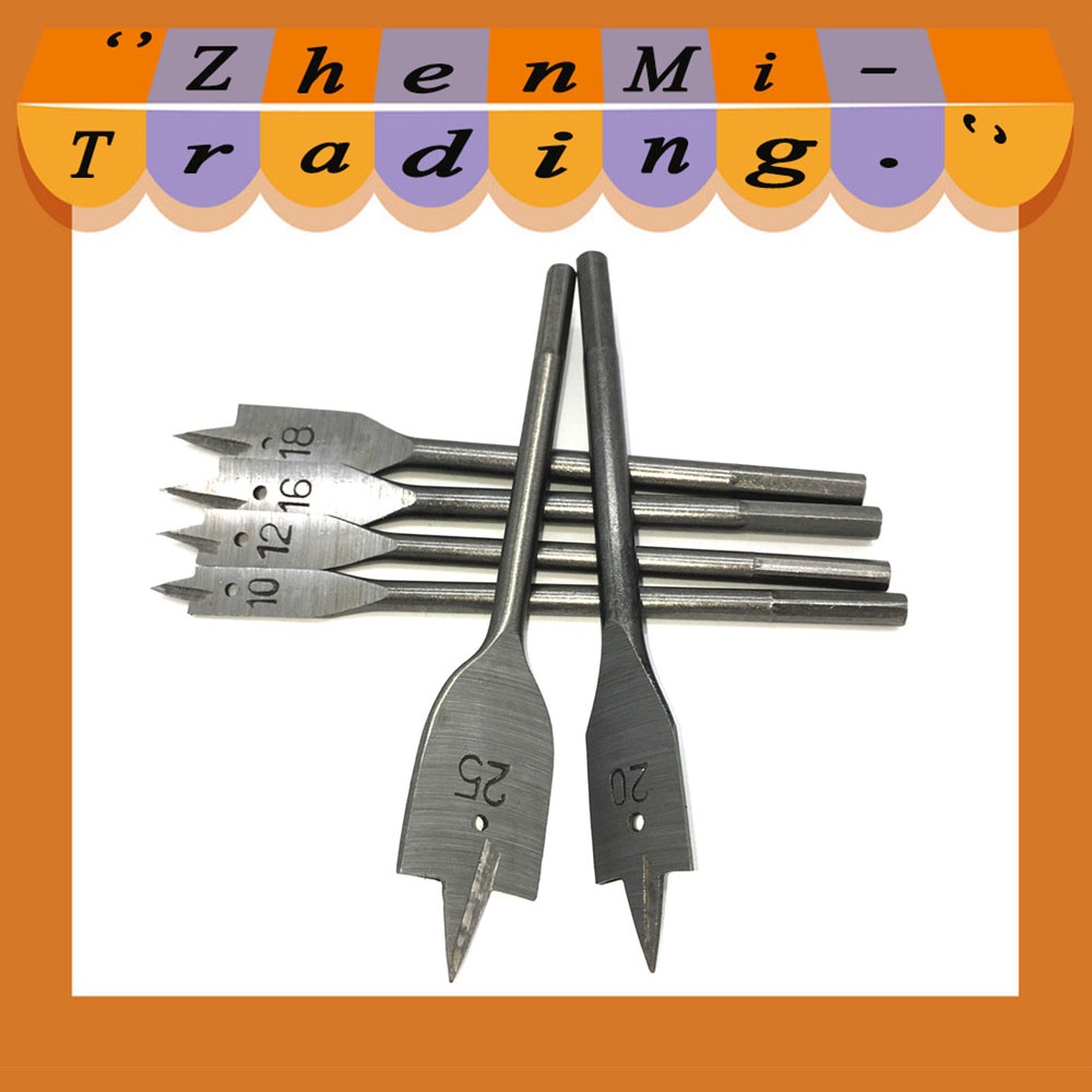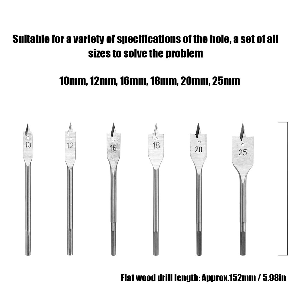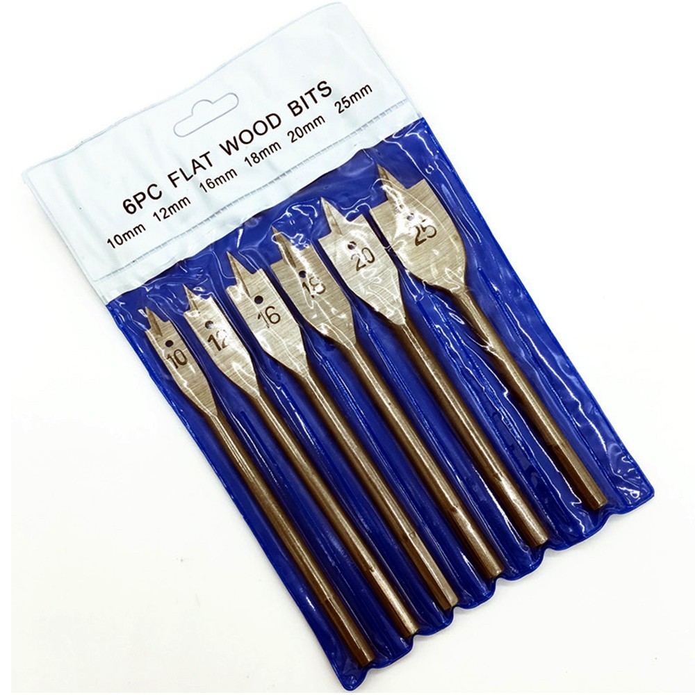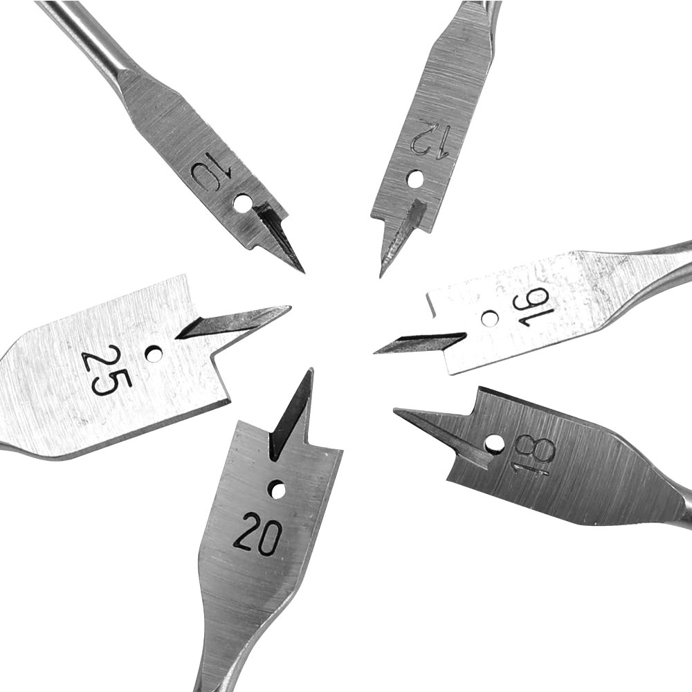 6pcs Flat Spade Drill Bits Set Metal Bit Kit Hex Shank Woodworking Tool Accessories