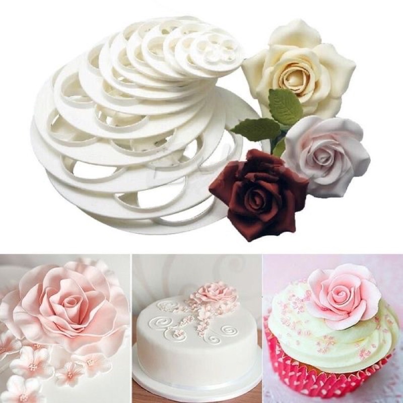 6pcs Flower Fondant Cutter Round Gumpaste Rose Easy Fondant Rose Sugarcraft Cookie Molder TCC