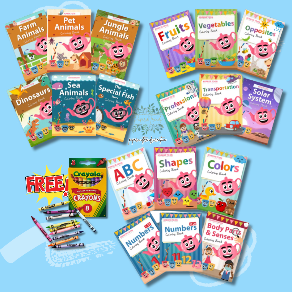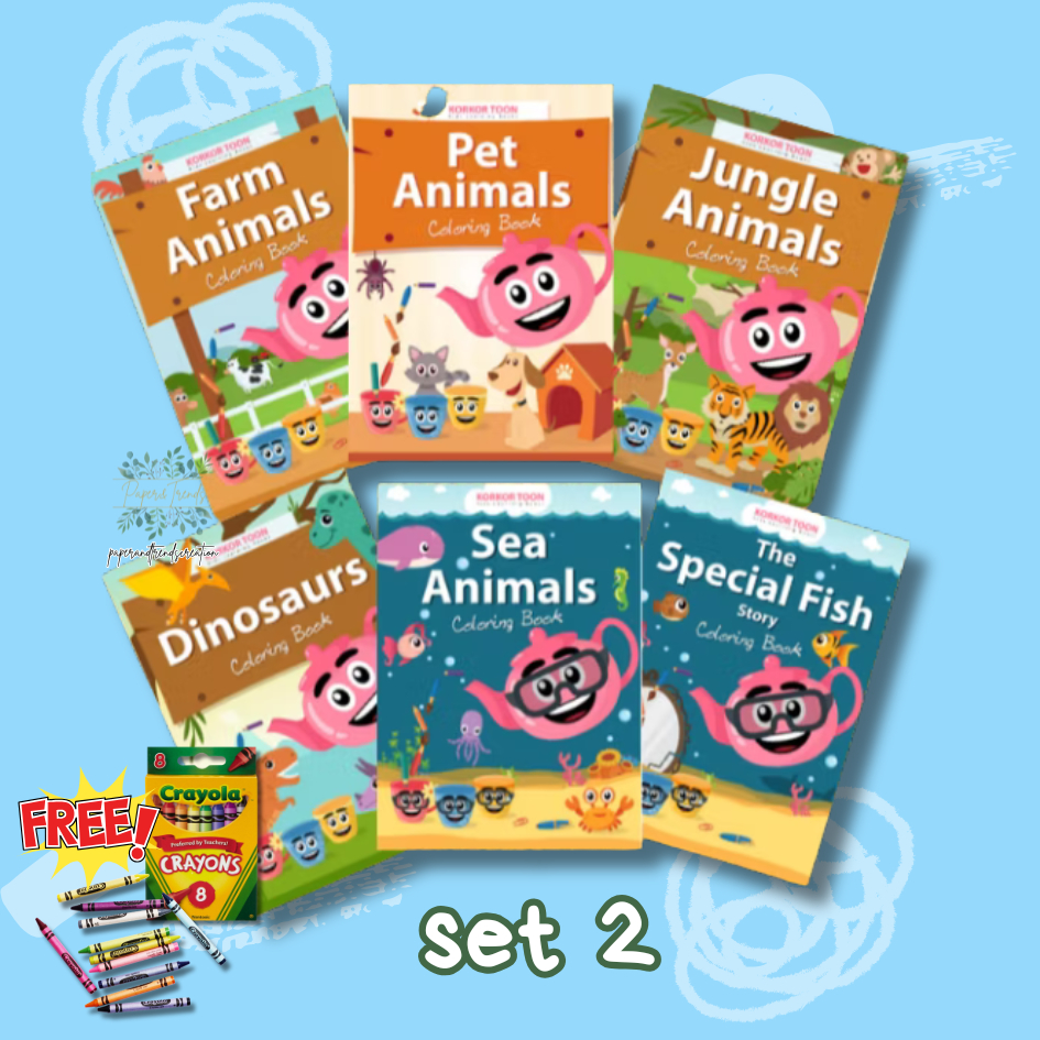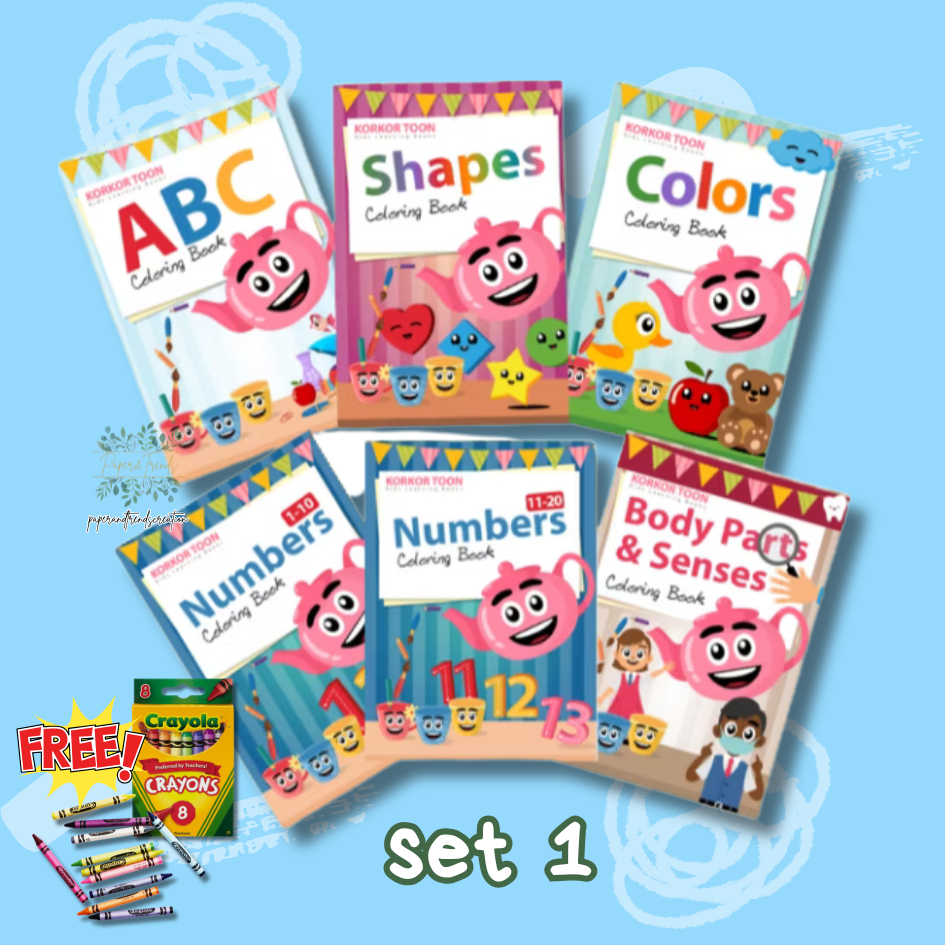 6pcs Kids Coloring Books | Alphabet Numbers Shapes Colors Animals | Preschool Workbook | FREE COLOR