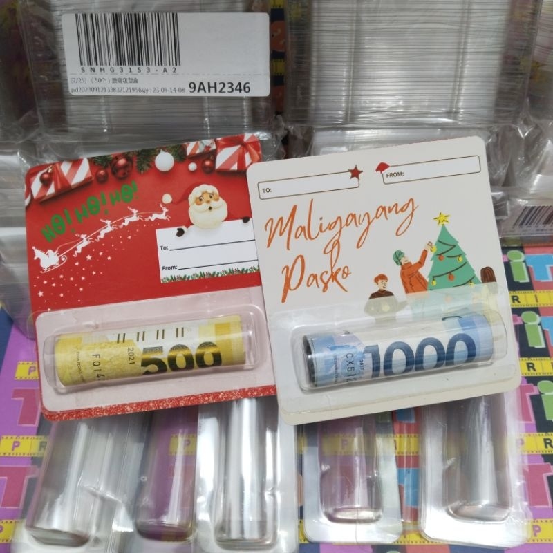 6pcs Money Card Set Acetate tube with Card Modern Angpao for christmas